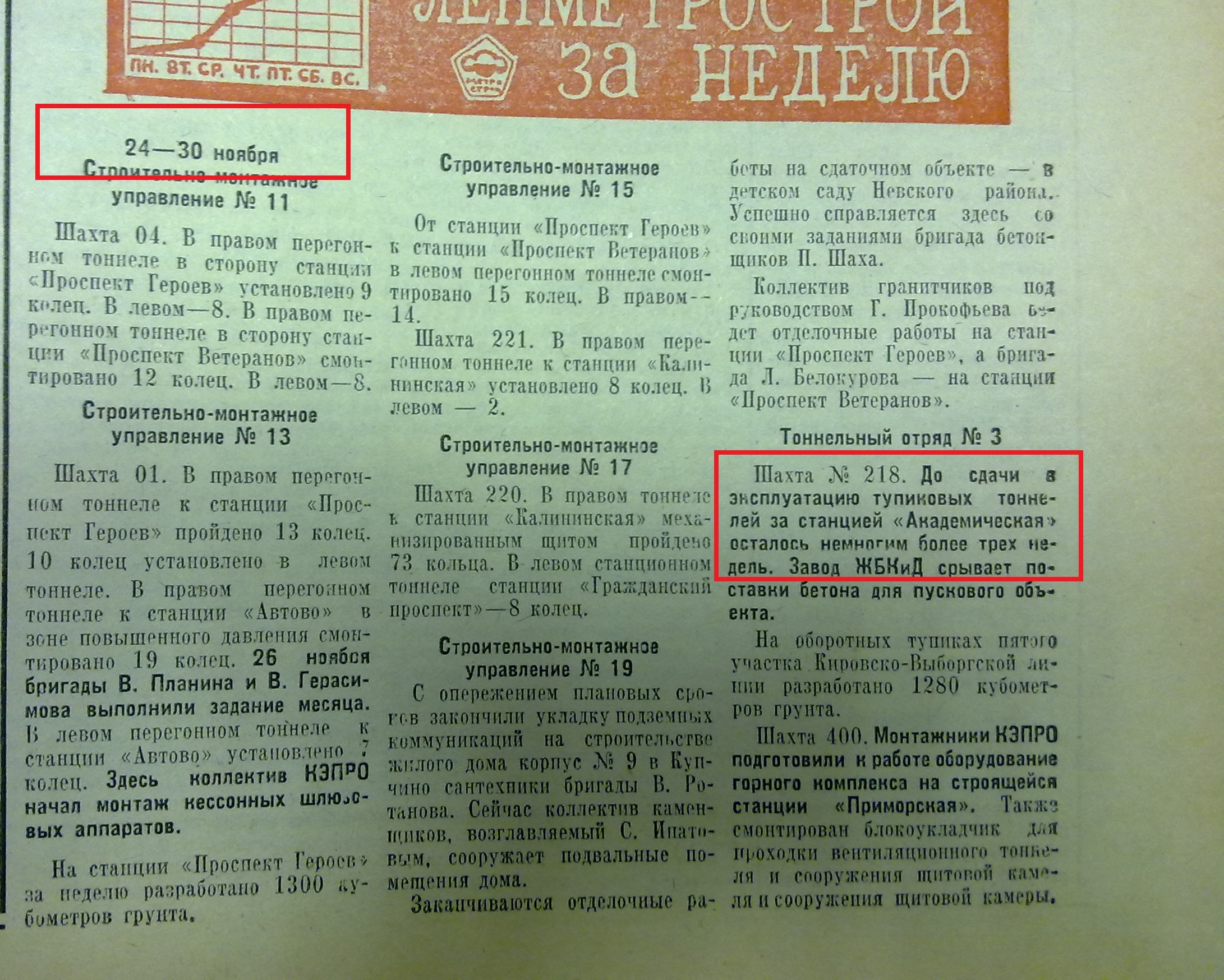 В качестве подтверждения - фото из газеты "Ленинградский метростроитель" за 1976 год.