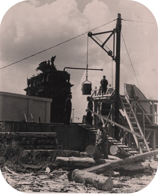 Очистка ствола шахты на стройплощадке № 12 у Нарвских ворот.