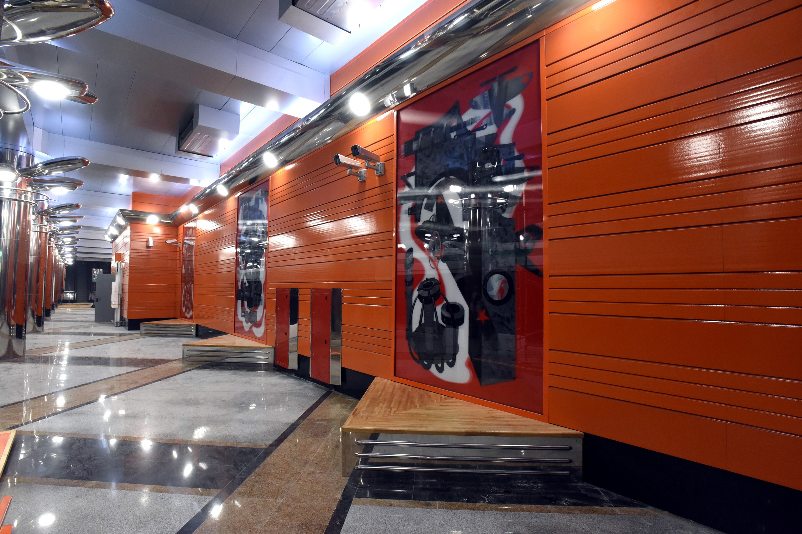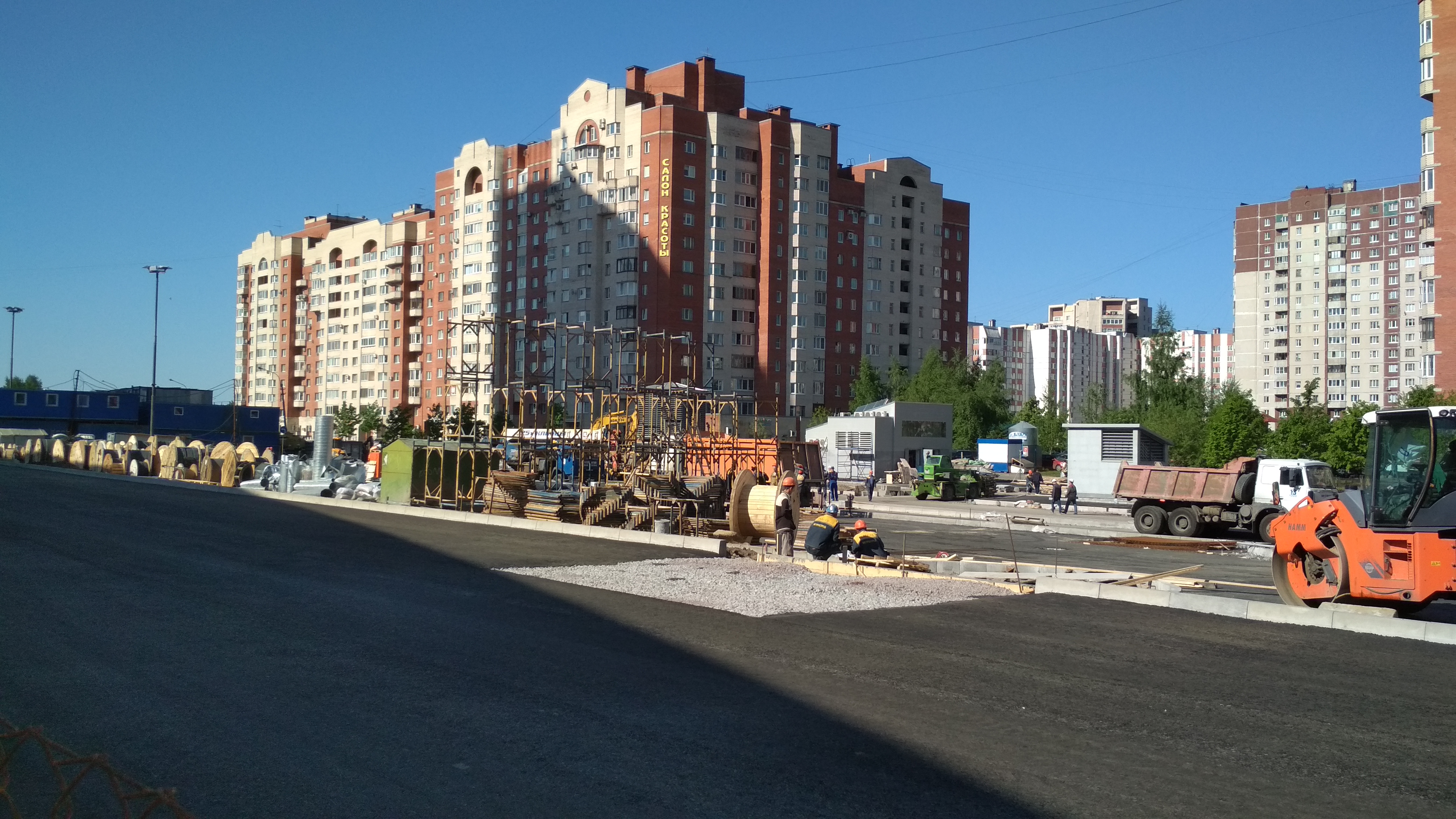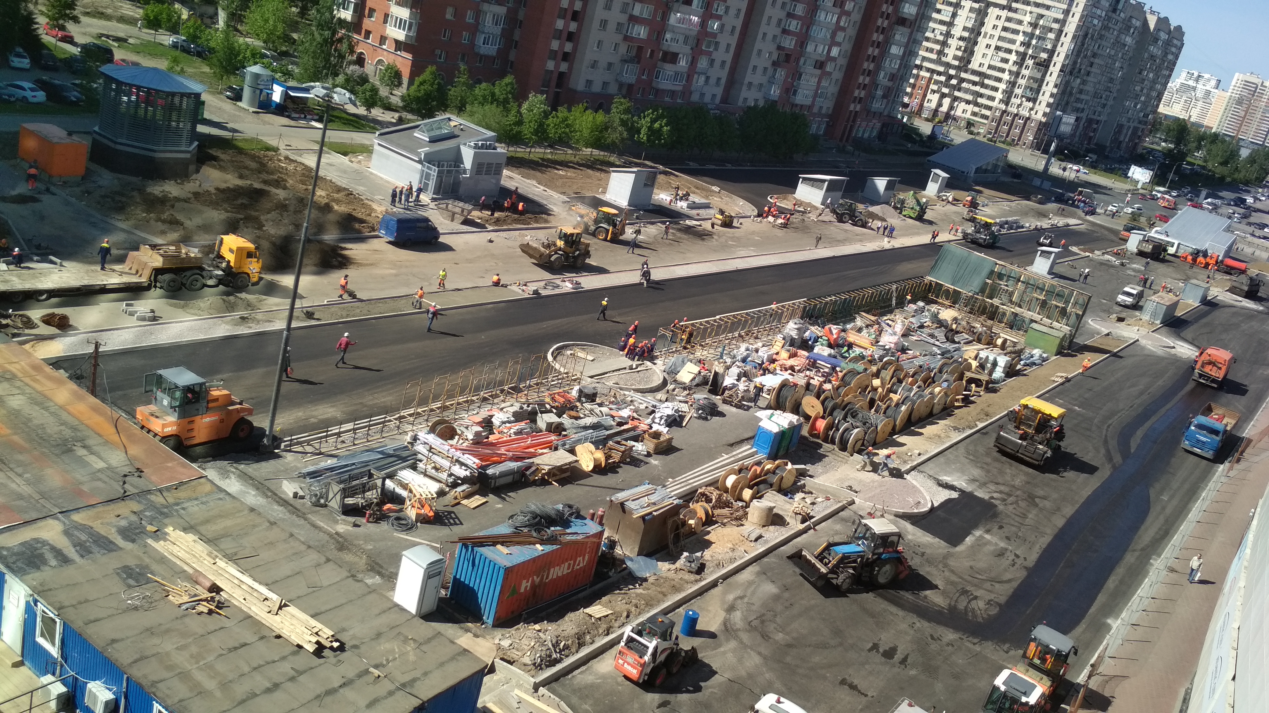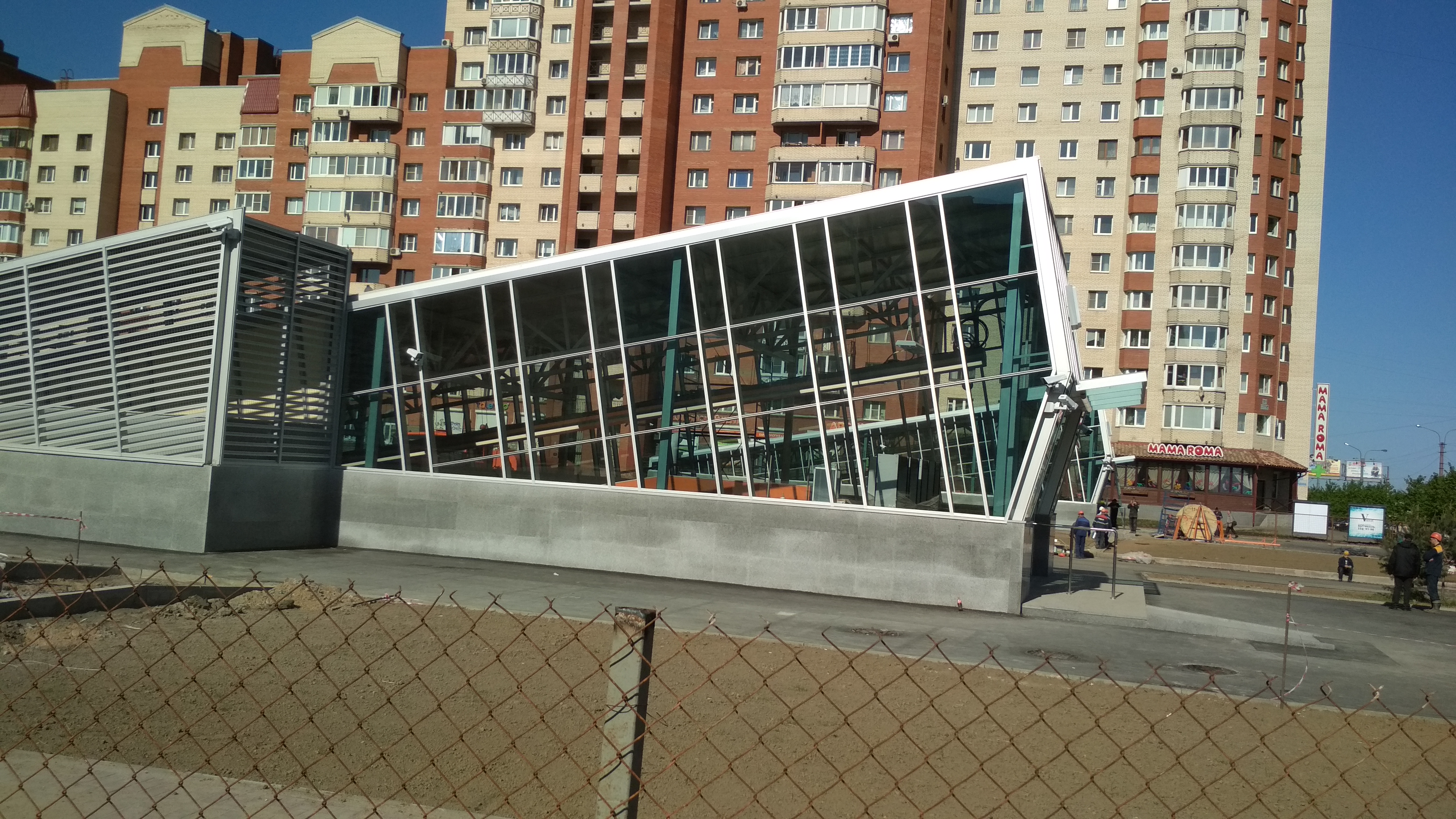 В Павильонах установлены рамки на вход (на мой взгляд совсем близко к дверям, хотя проектировщикам наверное виднее, с точки зрения удобства пассажиров и эргономики :roll:) , местами развешены камеры и информационные таблички. Катушки с кабелями кочуют из угла в угол по площадке, асфальтовые поля растут.