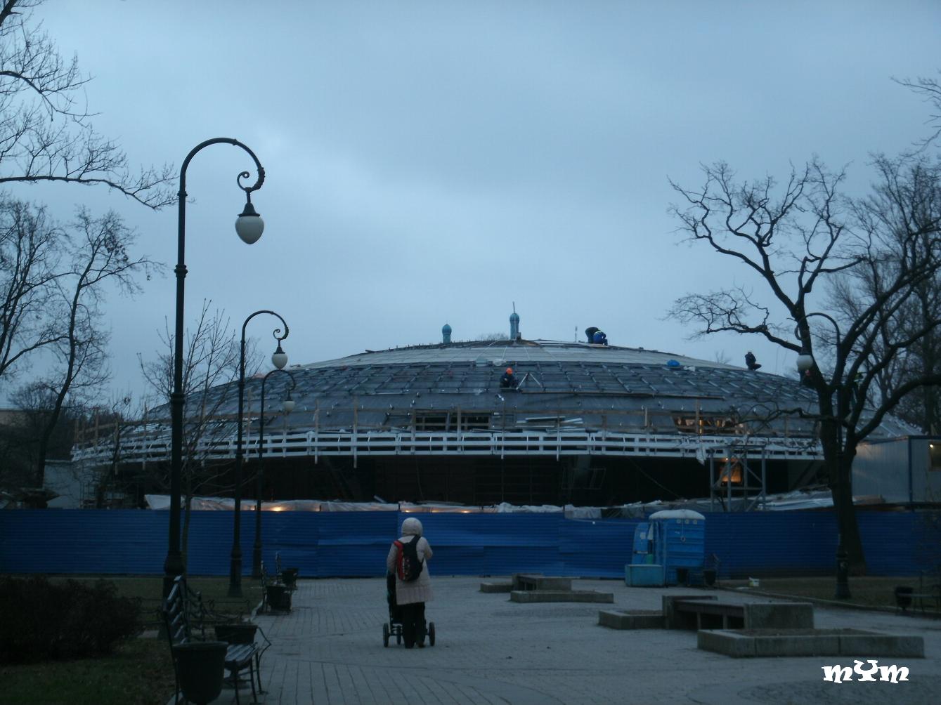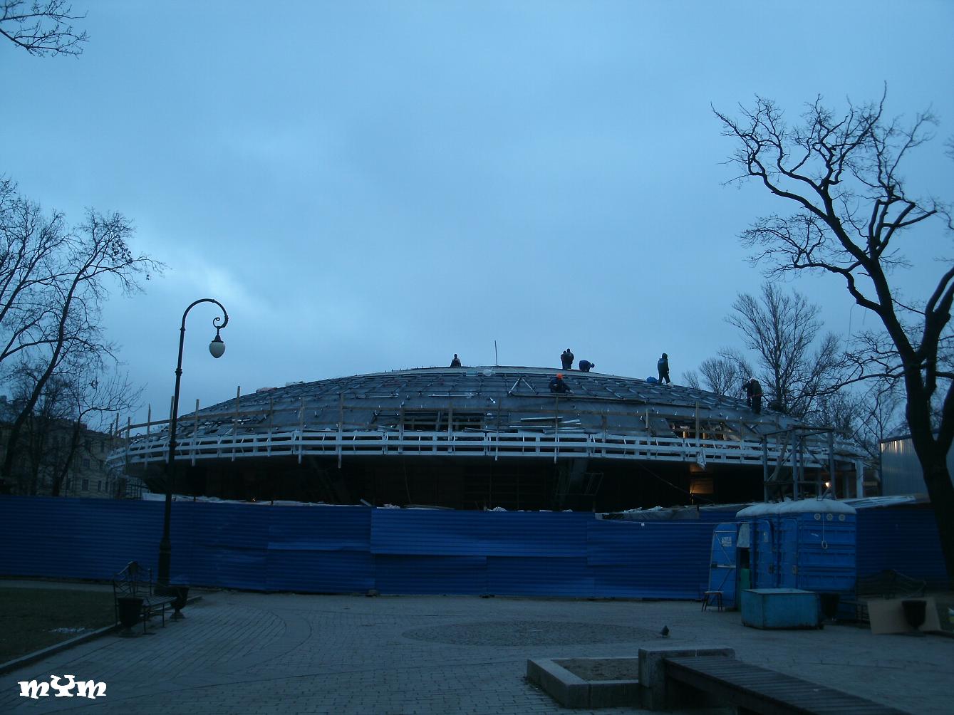 так а как вы хотели? и помещения внутренние побольше, и место для турникетов на выход, и второй этаж - и чтоб размеры те же. пока еще не начали отделку крыши, но если она будет приличная - пускай себе видна будет с Каменноостровского пр, никаких видов НЛО в парке не испортит
