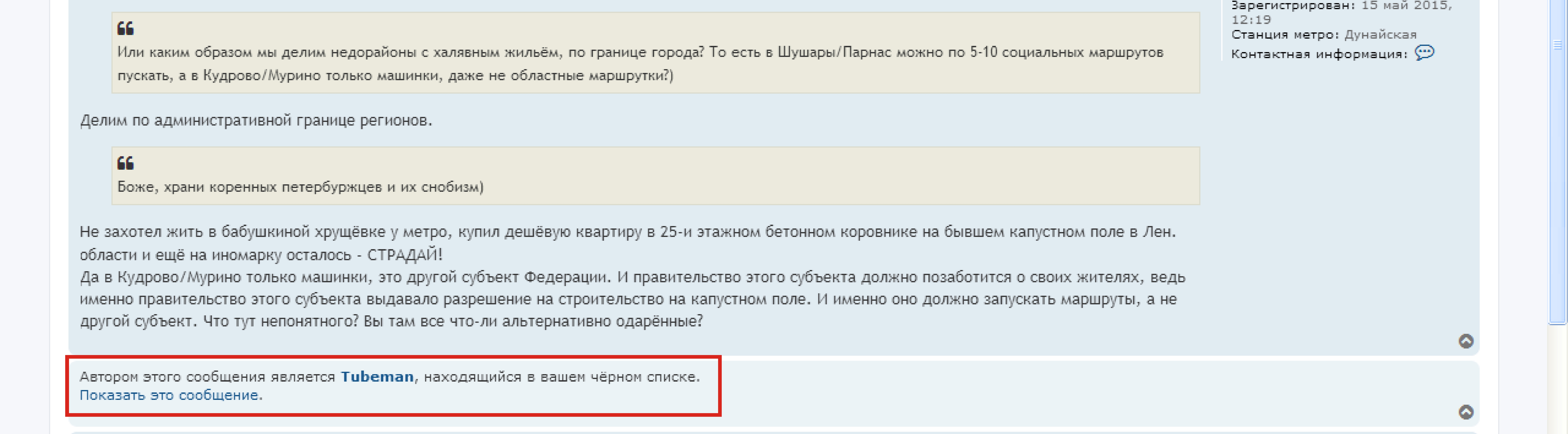 Он и ещё несколько товарищей в чёрном списке у меня давным давно. И их сообщения у меня не отображаются. Видимо, тьюбмэн и другие когда-то что-то очень замысловатое написали, раз у меня они в невидимках)