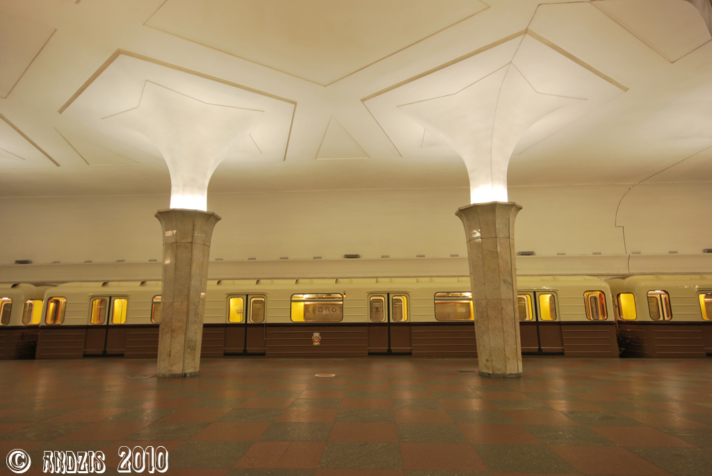 Эх, а могло бы быть еще красивее: на Марьиной Роще изначально планировался другой рисунок пола и в тон ему пояс из коричневого мрамора на пилонах. Но тем не менее, окончательный вариант тоже радует.