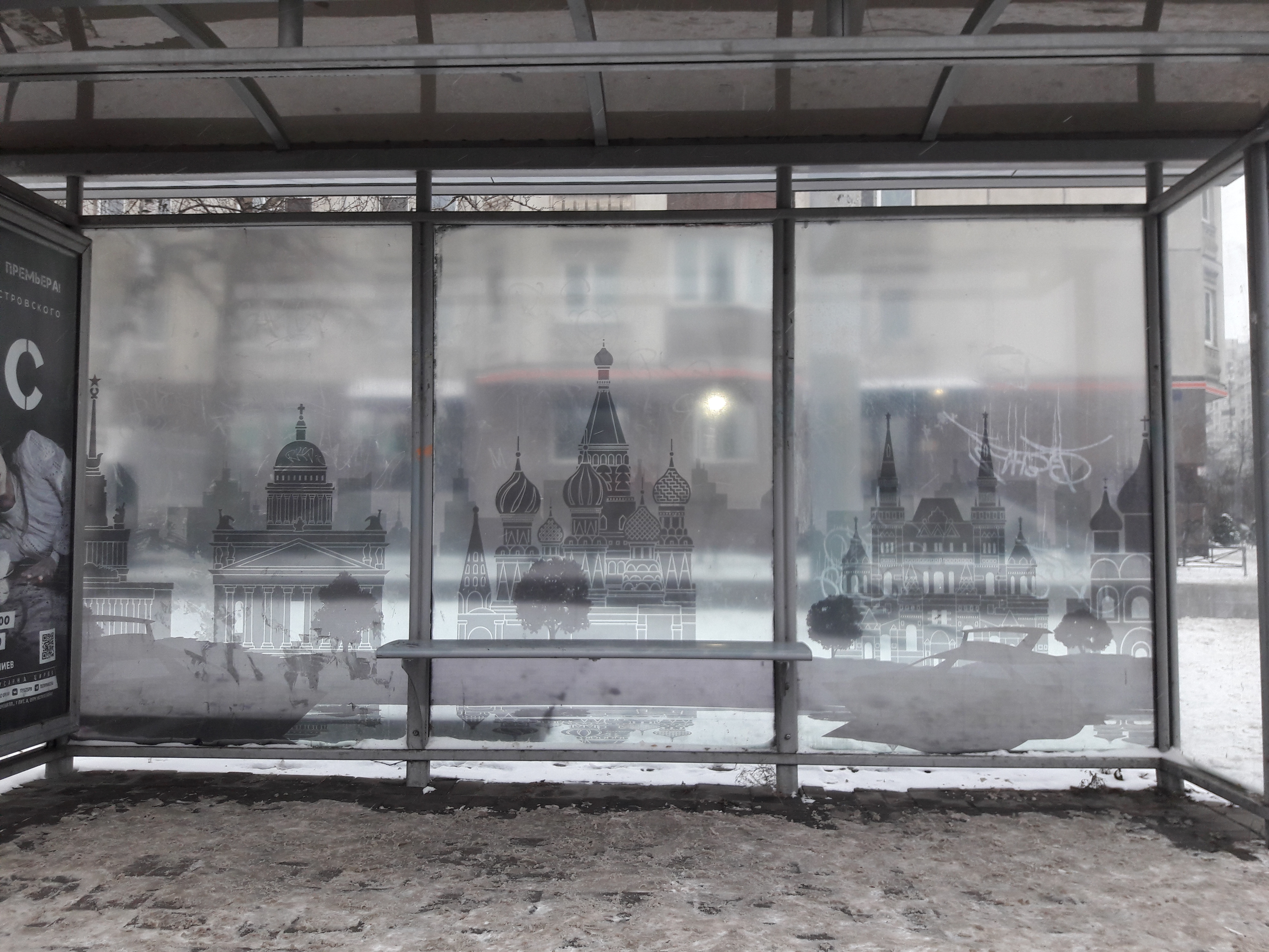 Насколько знаю остановки с рекламой в ведении рекламных фирм, их дизигнер или слишком занят или ему мало платят или и то и другое, а может просто жoпа ленивая.