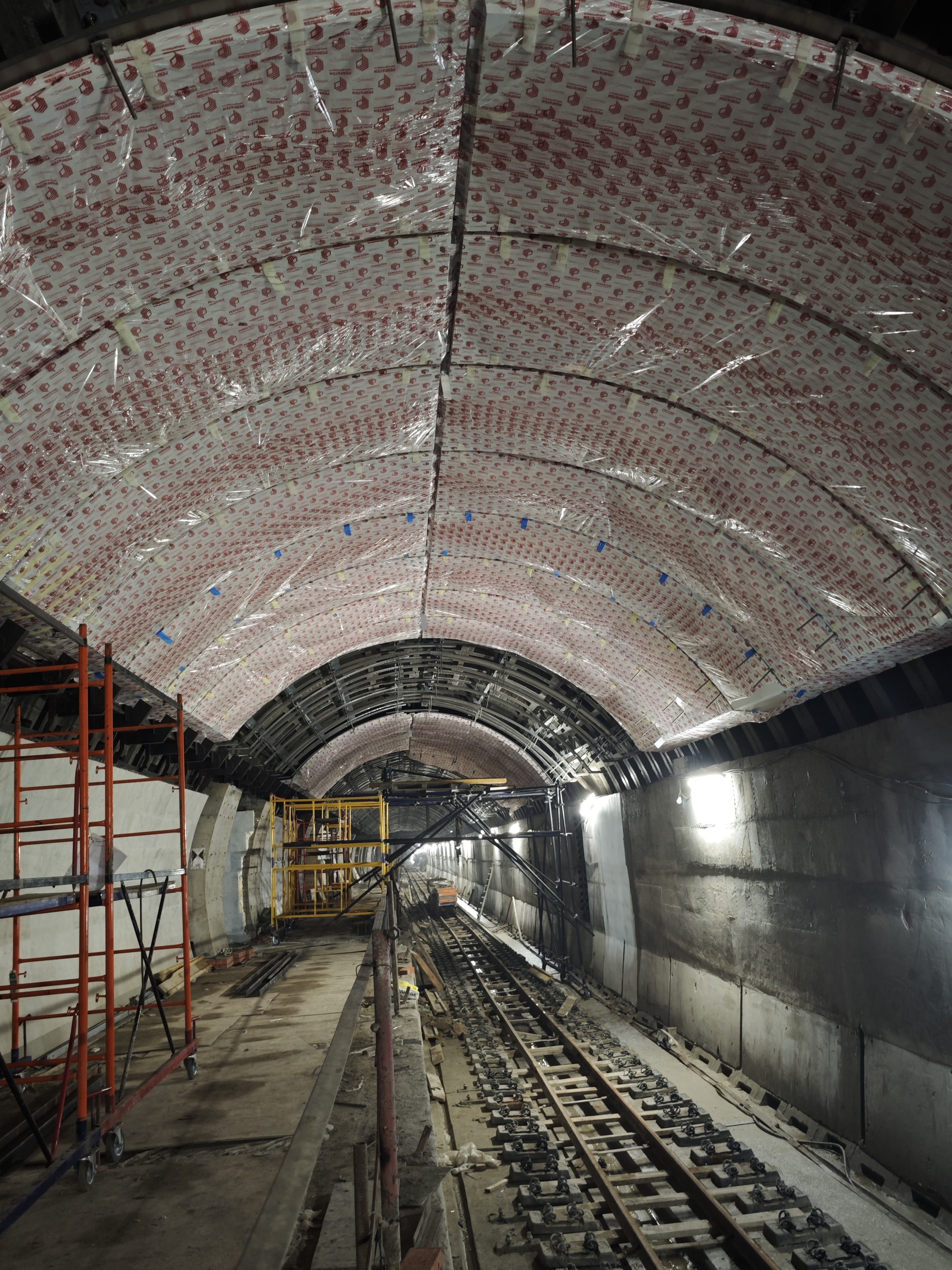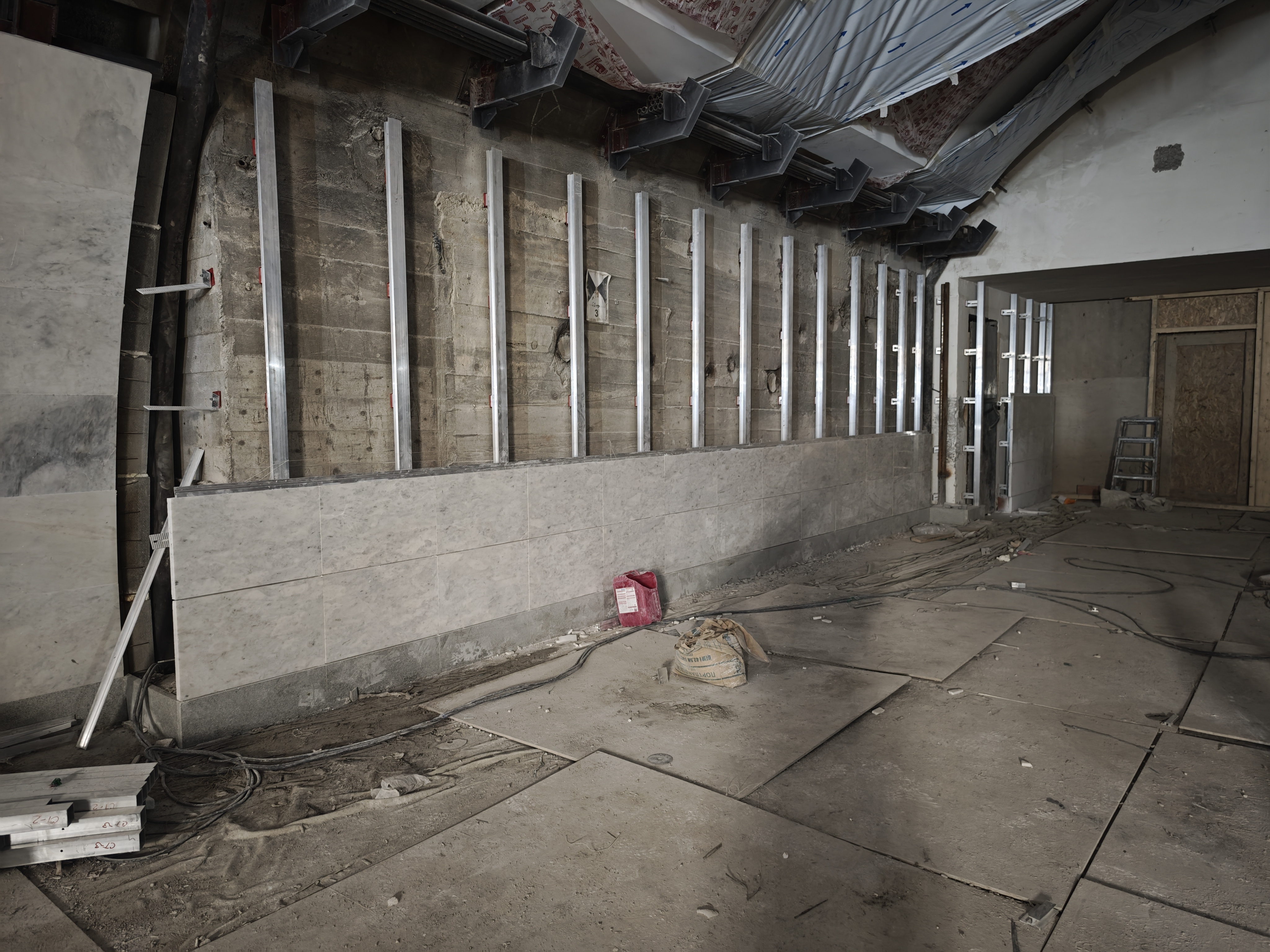 В эскалаторном зале вестибюля станции «Юго-Западная» начался монтаж цепей и осей для ступеней эскалаторов.