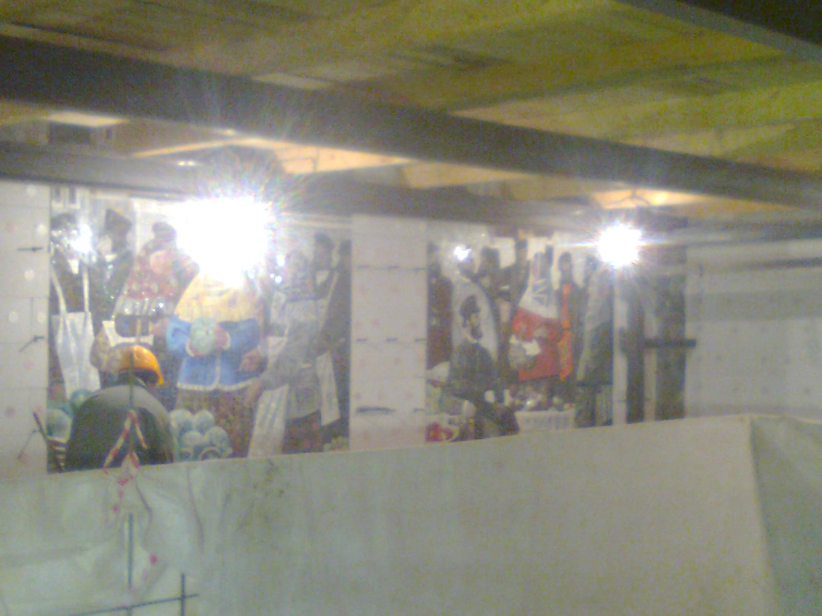 В наземном вестибюле станции метро «Спасская» начался монтаж мозаичных картин с сюжетами из произведений Достоевского, Некрасова и многих других классиков, бывавших в чреве Петербурга, как называли прежде Сенную площадь.