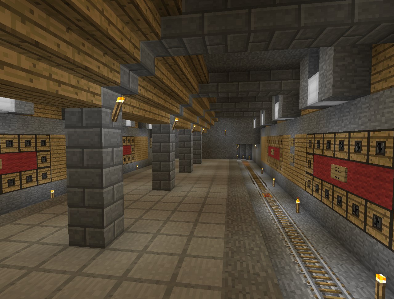Практически основной целью содержания этого сервера, через кой за время существования прошло 1,5 сотни игроков, для меня является строительство метрополитена, отдалённо приближенного к реальным (пост)советским. Типы станций весьма разнообразны, тоннели в основном двухпутные. Строительство ведётся в survival-моде, а это значит, что все материалы для работ приходится добывать, и выкапывание объёмов занимает определённое время. Таким образом, свою приязнь к метрополитенам я выражаю в строительстве собственного)