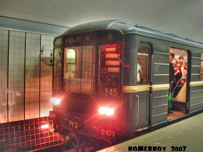 Те, кто имел радость изучить альбом 1955-1995 метрополитен Северной столицы, тот мог обратить внимание на иллюстрацию с необычным пионерским номерным в Девяткино (особенность заключалось в том, что вместо 2 верхних фонарей там стояло 3!Как у Емки) !!Повествовалось о том, что сие чудо советского машиностроения был собран на деньги от сданного ленинградскими пионерами металлолома.Так вот меня всегда волновало, ходит ли он сейчас.И вот сегодня я нечто похожее увидел на МПЛ.Запомнил номер одного головного вроде 8480.