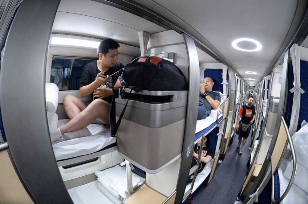 1 июля в Китае, с Пекина был запущен новый скоростной поезд плацкартного типа. Китайцы запустили не просто поезда, а новые двухэтажные составы, где предоставлены комфортные для пассажиров и не нарушающие личное пространство вагоны. Каждое место выглядит как отдельный отсек.