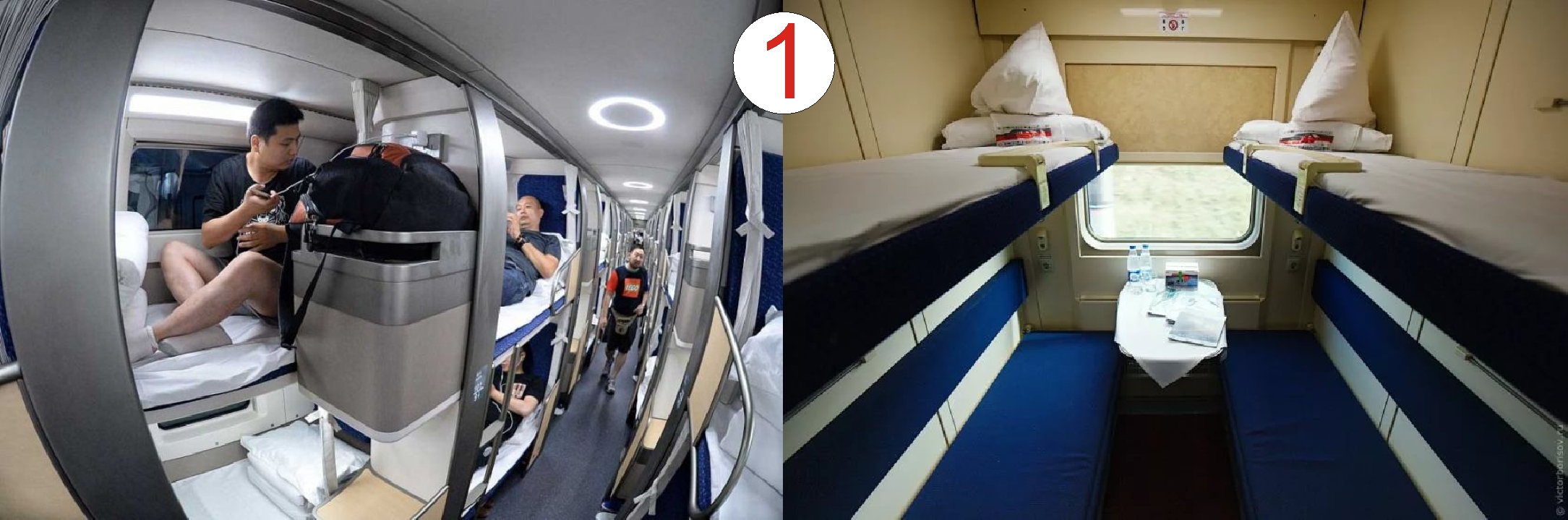 1. На первой картинке видно, что на верхней полке в китайце весьма уютно: просторно, есть тумбочка и розетка. У нас в двухэтажном купе только теснота и ничего кроме неё.