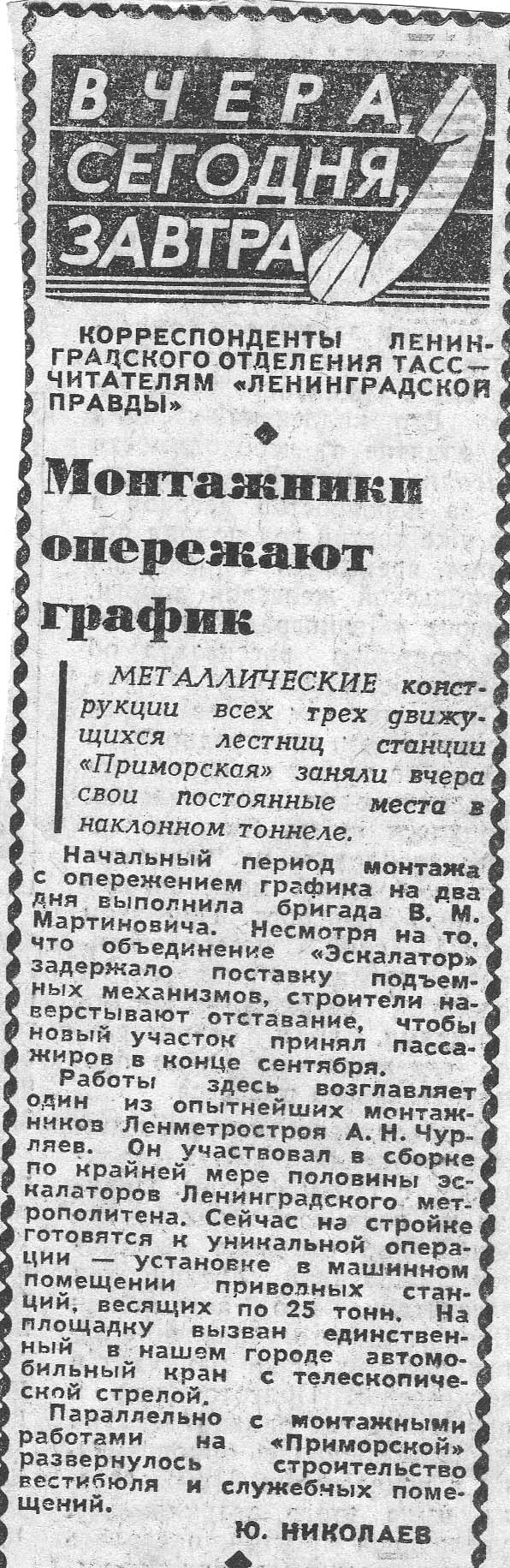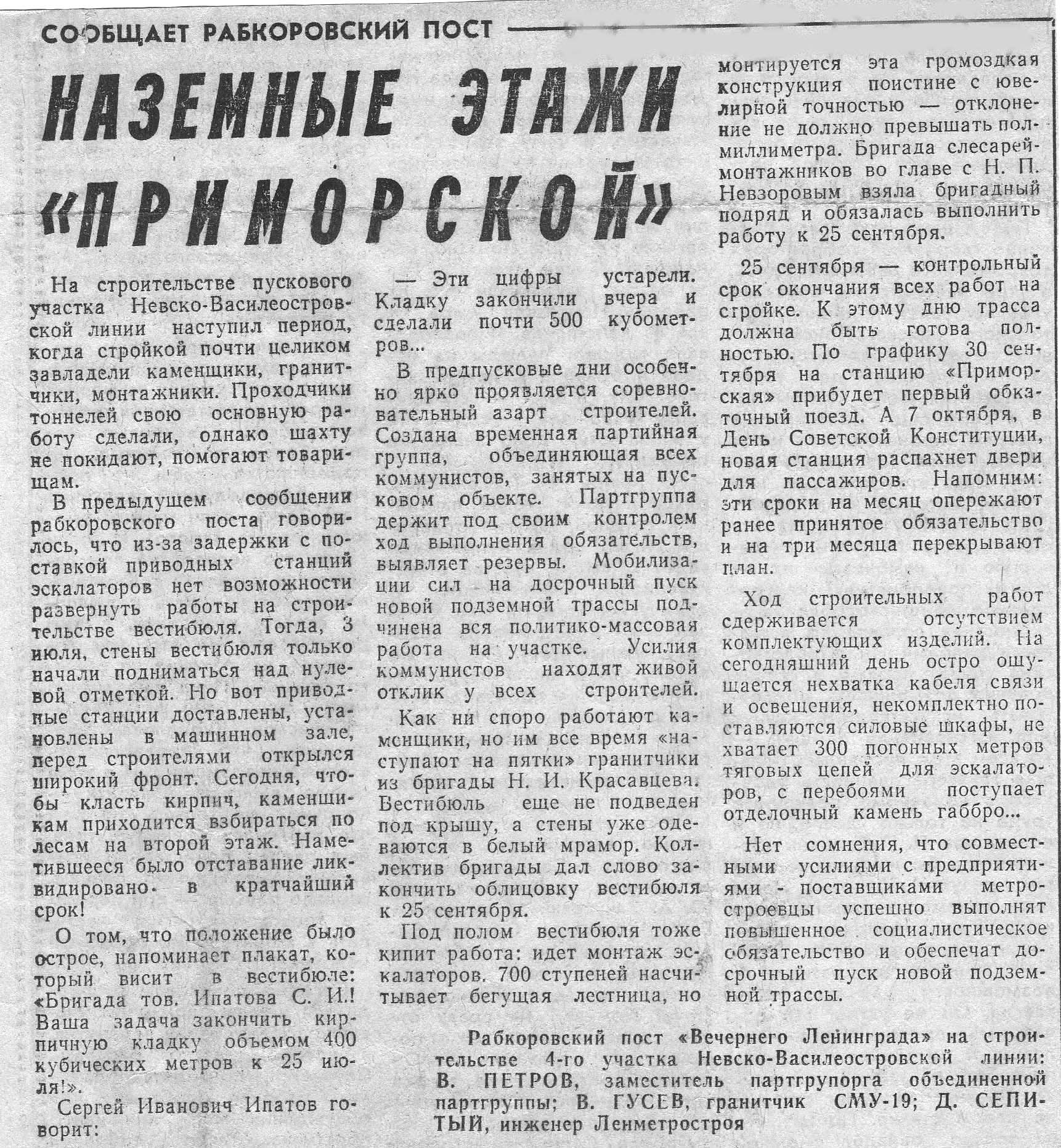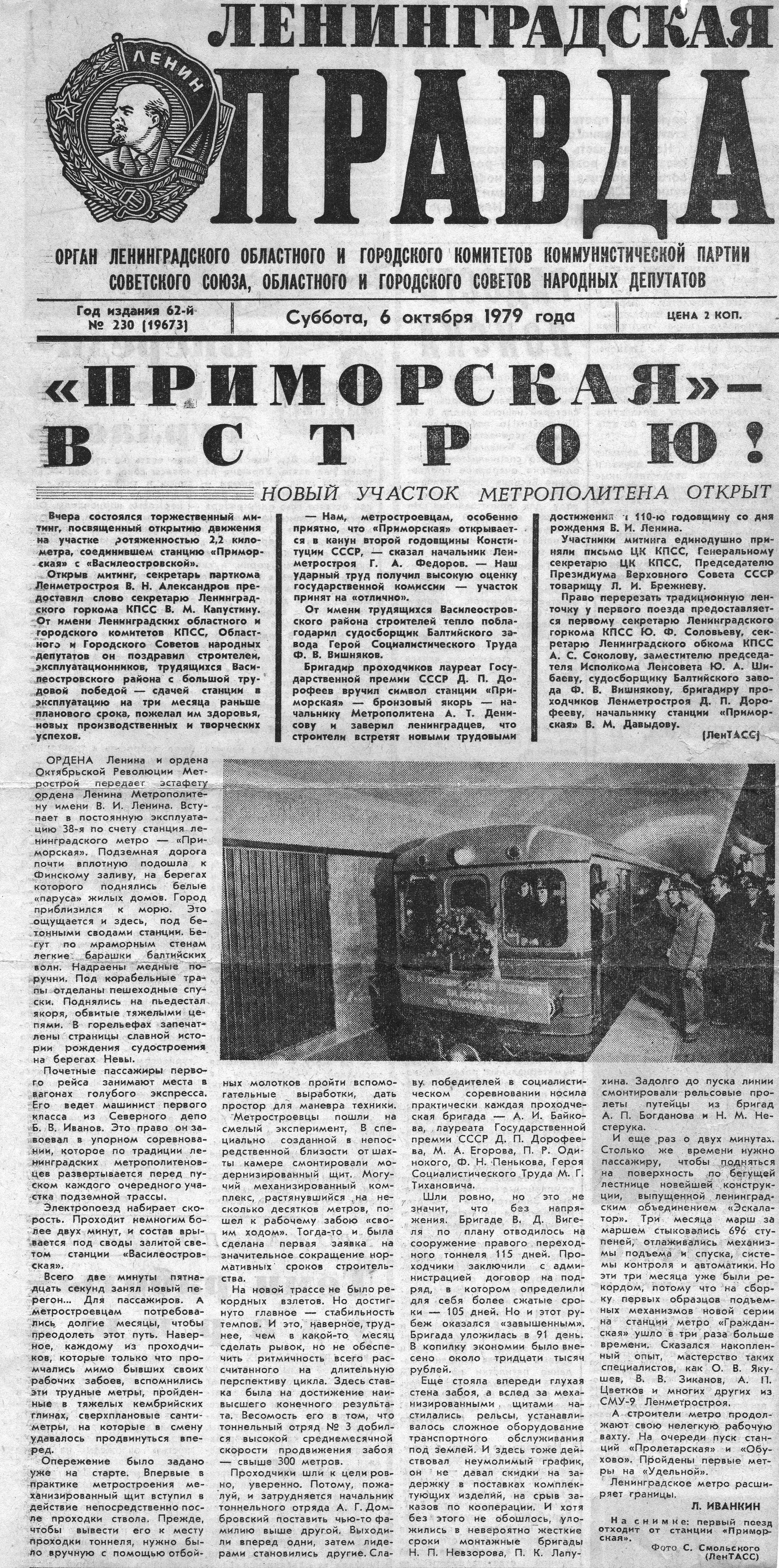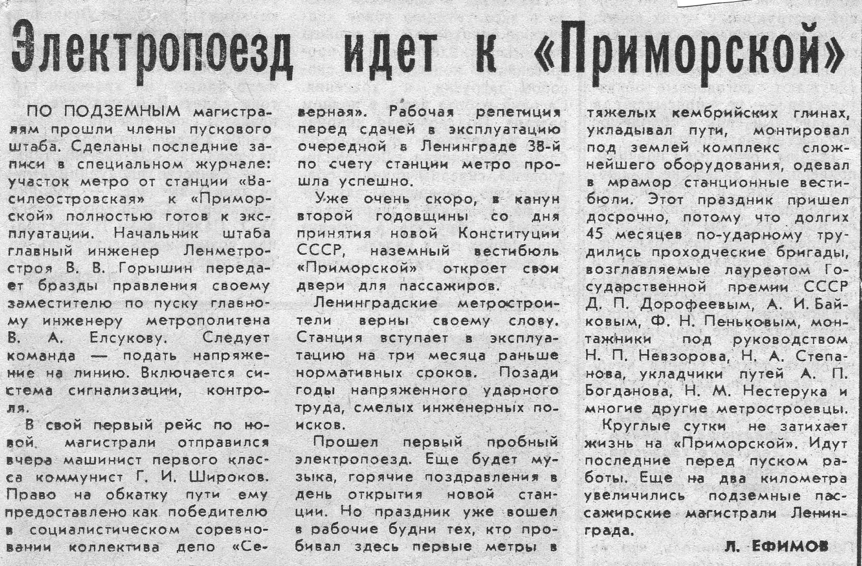 газета "Ленинградская правда" 78-79гг. о строительстве Приморской.