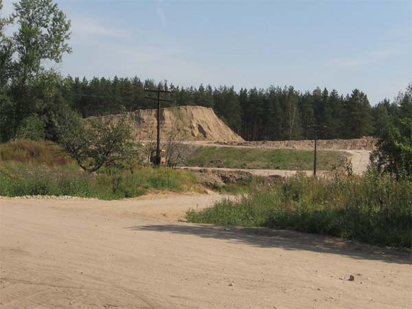 Вид с той же точки с южной стороны ж/д на огромную насыпь, которая нависает над лесной проселочной дорогой соединяющей Мгу и проезд под ж/д.
