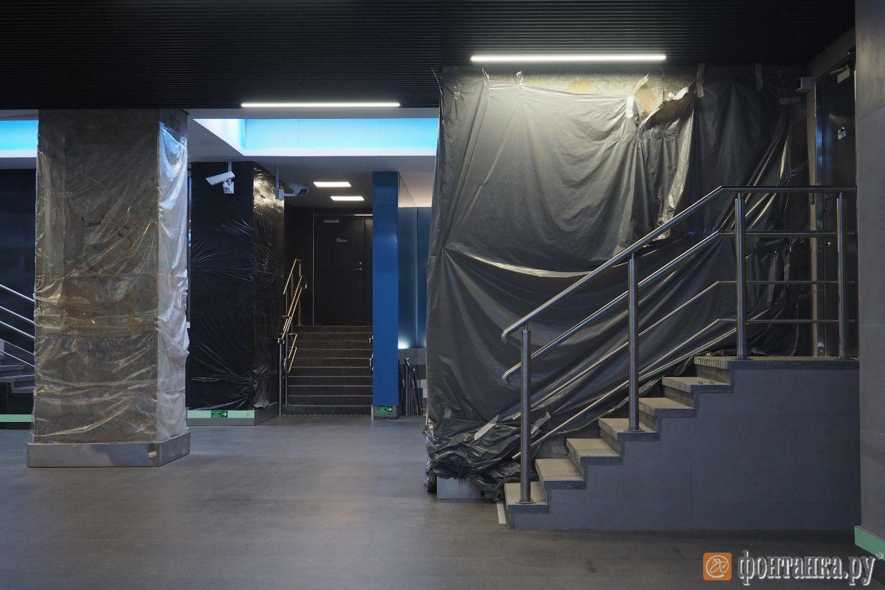 На станции метро «Новокрестовская» сразу в нескольких местах сняли облицовочную плитку и закрыли стены полиэтиленом. Об этом 22 января сообщает корреспондент «Фонтанки».
