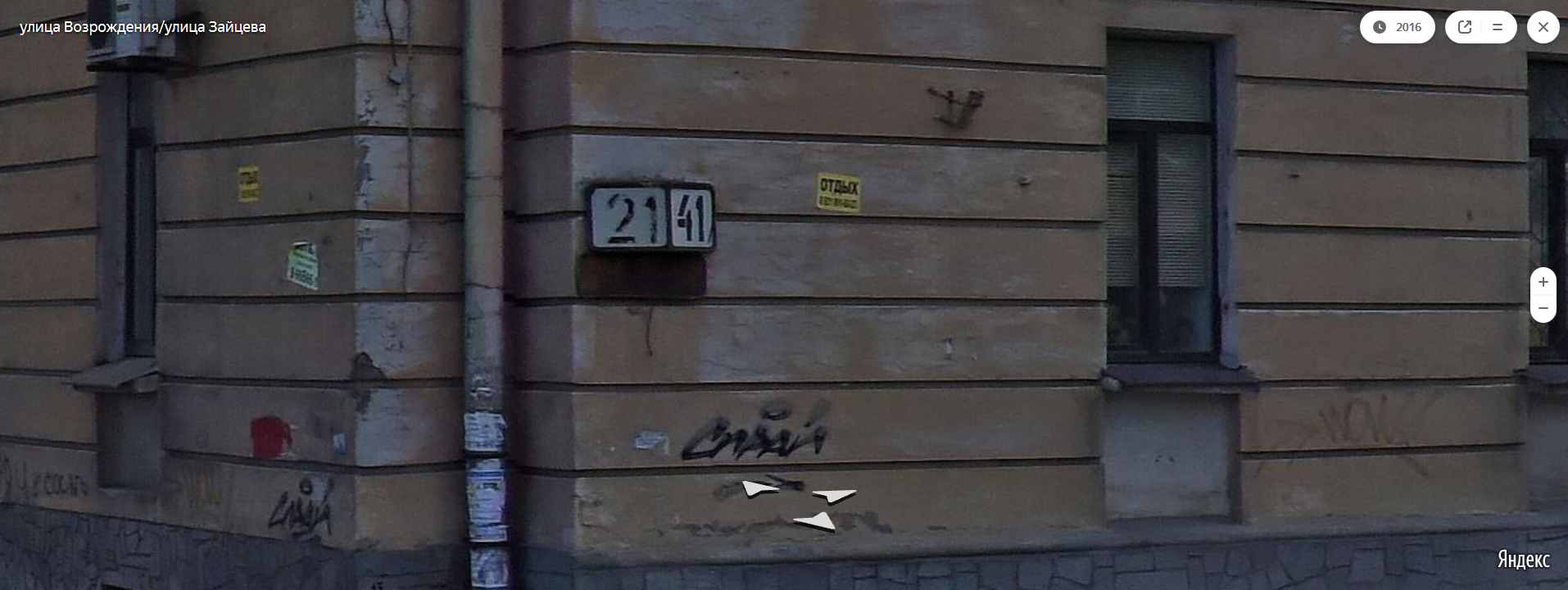 Зайцева, 21/41. На панораме нижняя часть уже почти не видна, но сейчас по образцу и подобию её изготовили заново