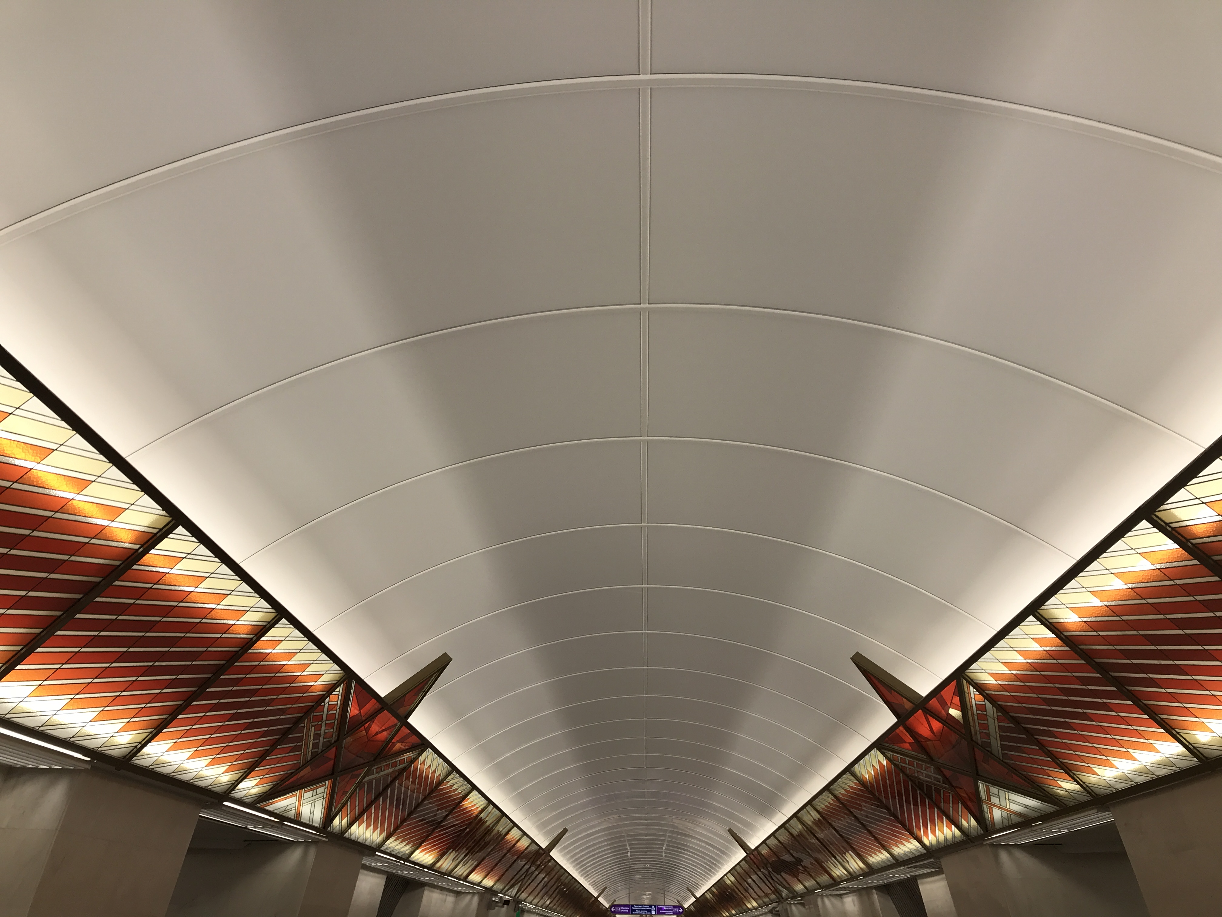 Что меня удивило, так это то, что торшеры на балюстрадах в наклонном ходе стоят шагом через три маленьких панели, как на старых станциях ставили в шаг через две длинные панели (две длинные = три короткие). На предыдущих станциях глубокого заложения ставили торшеры в шаг через четыре коротких, и через пять коротких панелей.