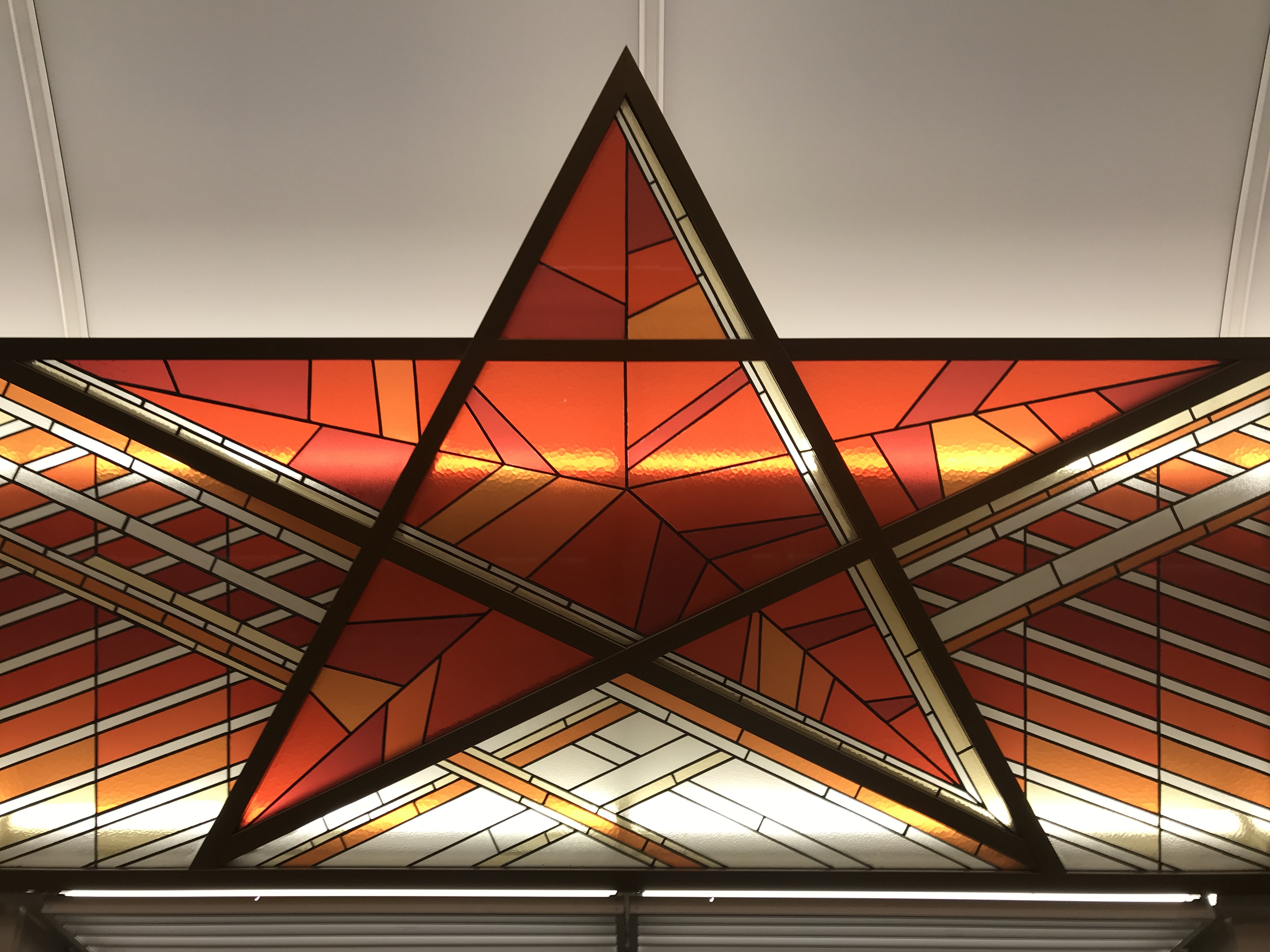 Самый главный + станции освещение. Светло, где-то даже ярко. Ну и классика. Ни звёзды ни витражи ничего не решают. При всём неприятии станция выглядит органично, качество отделки полноценная 4-ка. Мне понравилось.
