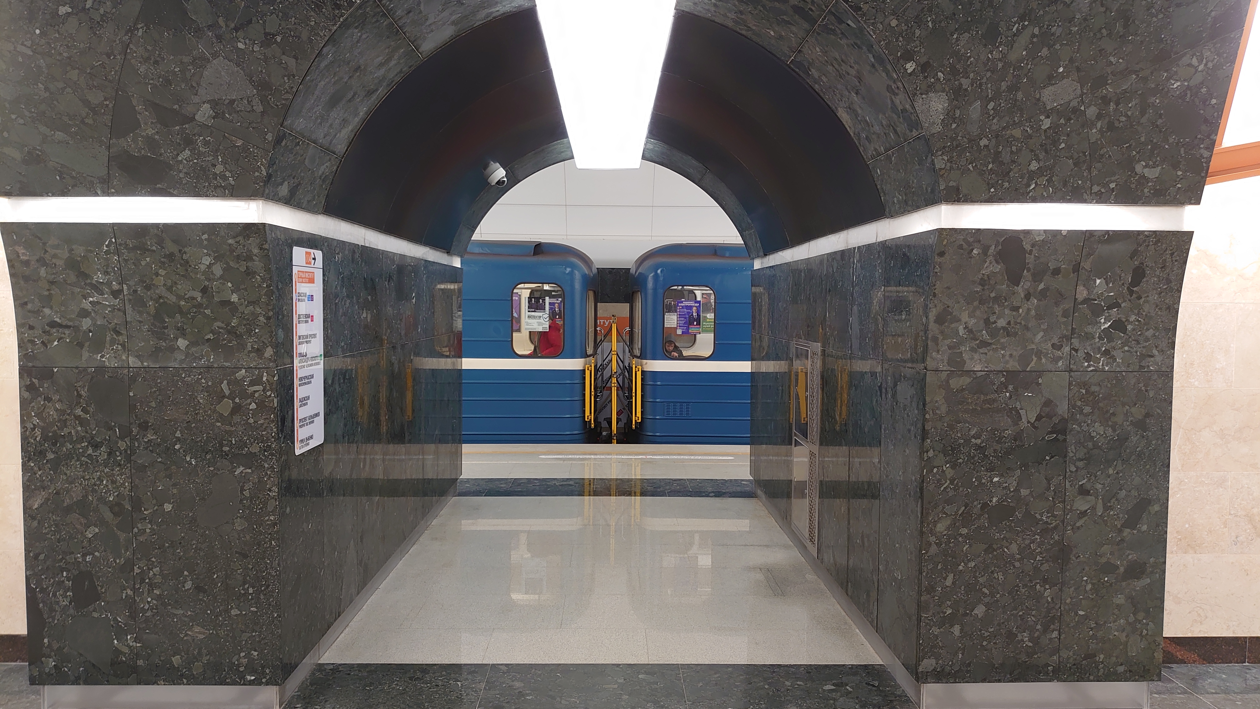 Обратил внимание, что маятниковые двери на входе и выходе здесь такие же, как и в Мосметро, облегчённого типа. Это хорошо.