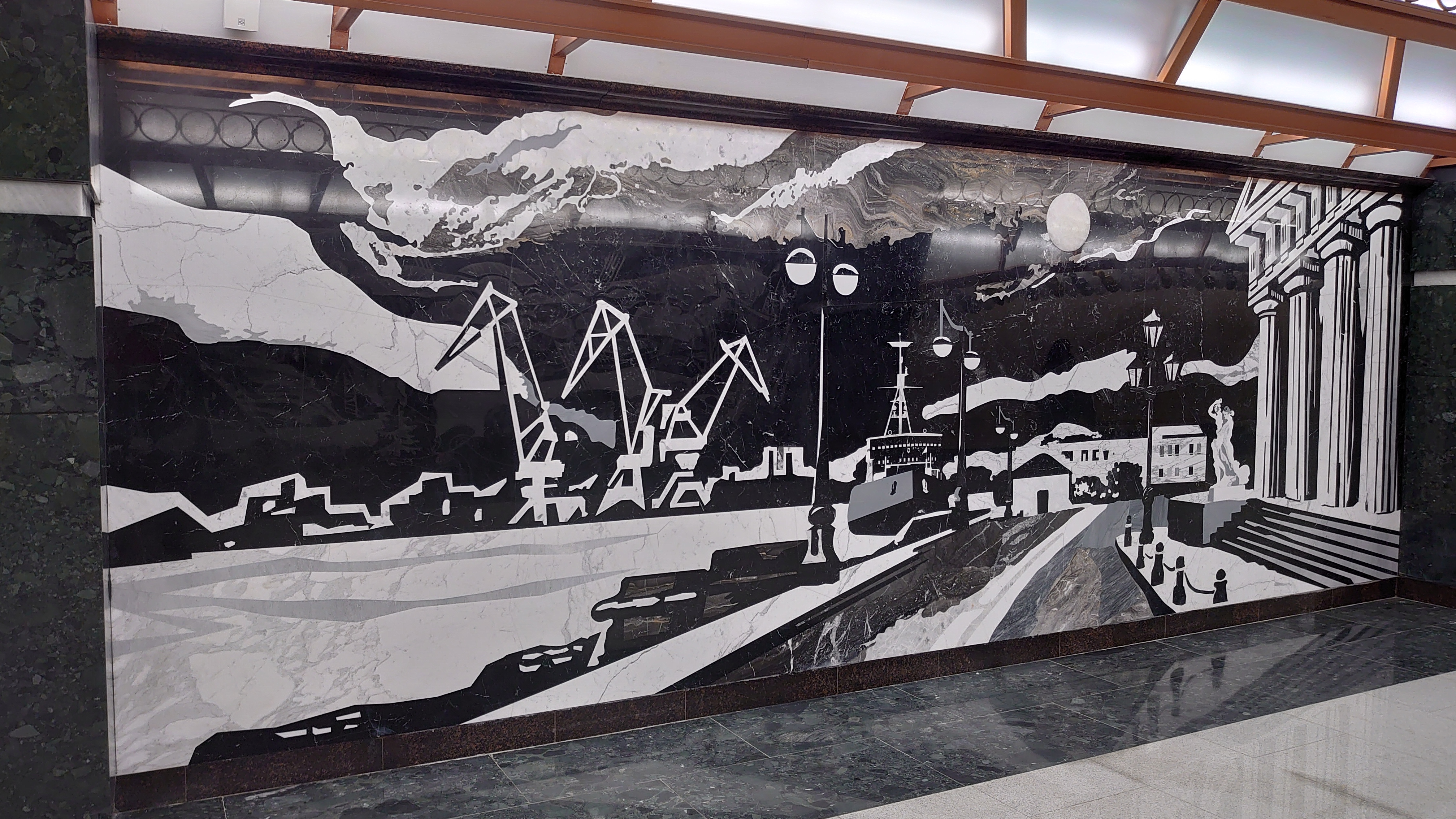 Станция и вестибюль смотрятся достаточно стильно. Понравилось панно над НХ. Ну и нельзя не отметить светильники на эскалаторах, наконец-то что-то новое.
