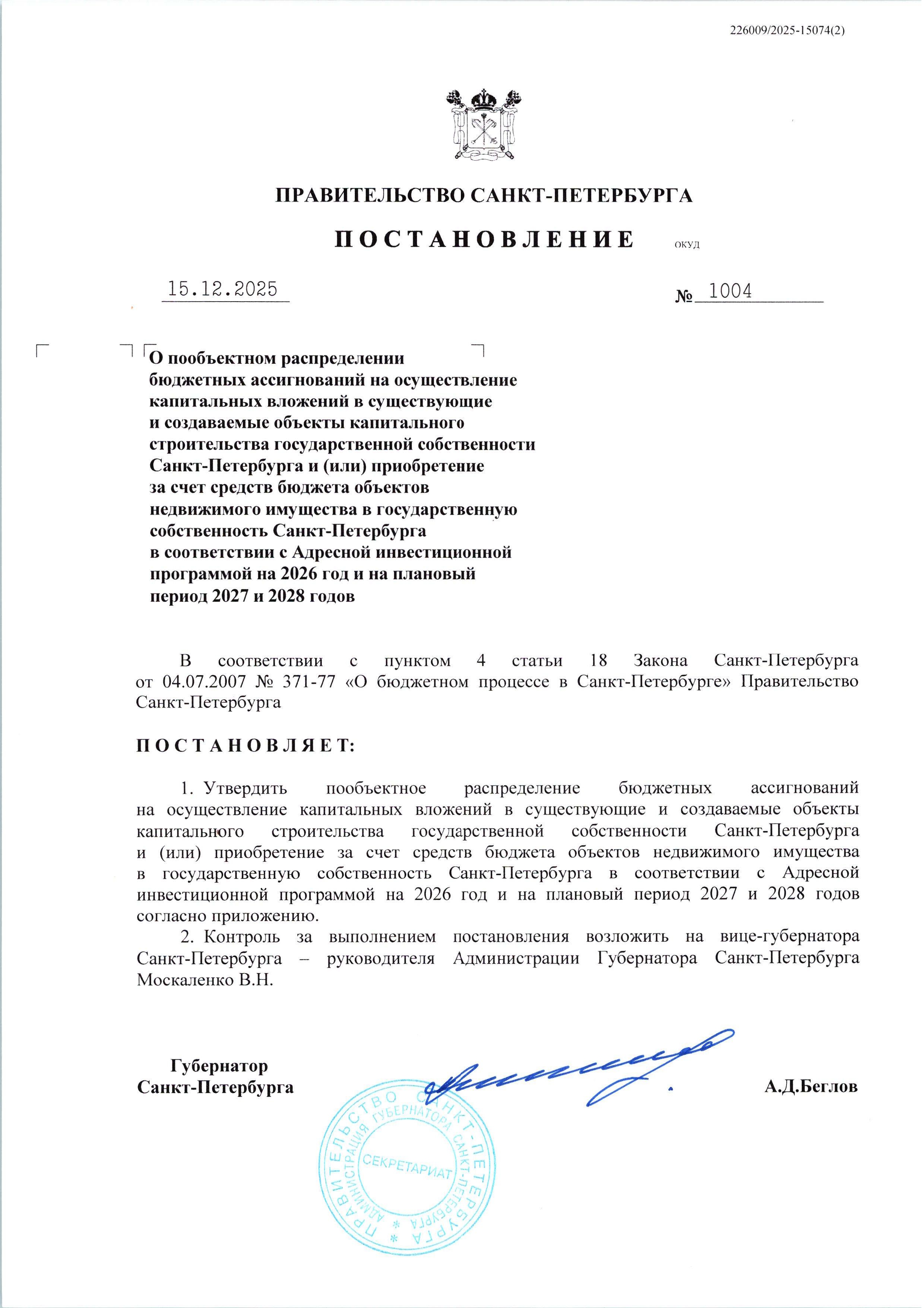 Опубликован подписанный АИП на 2026 г. В следующем году на строительство метро выделили 51 миллиард.
