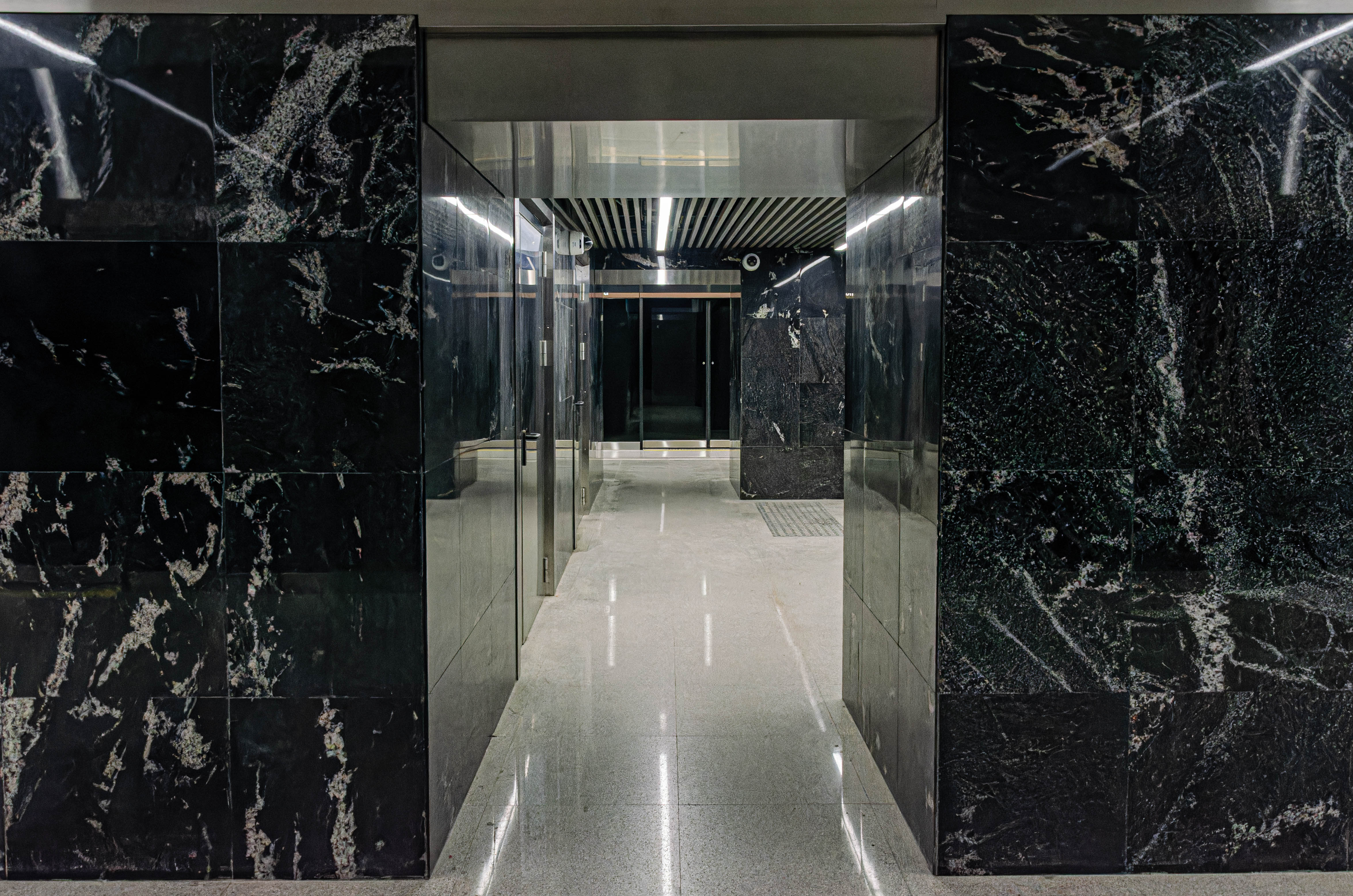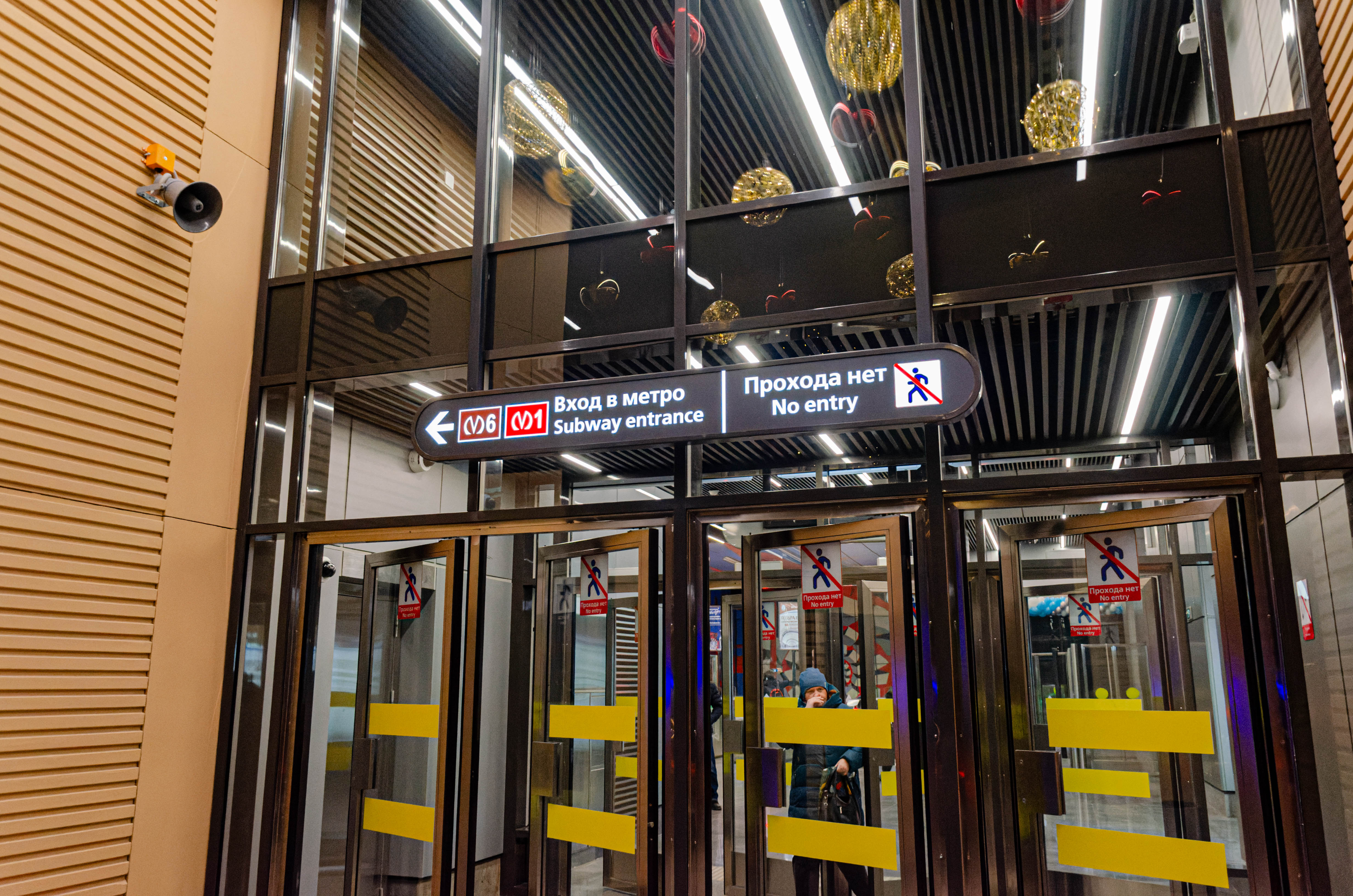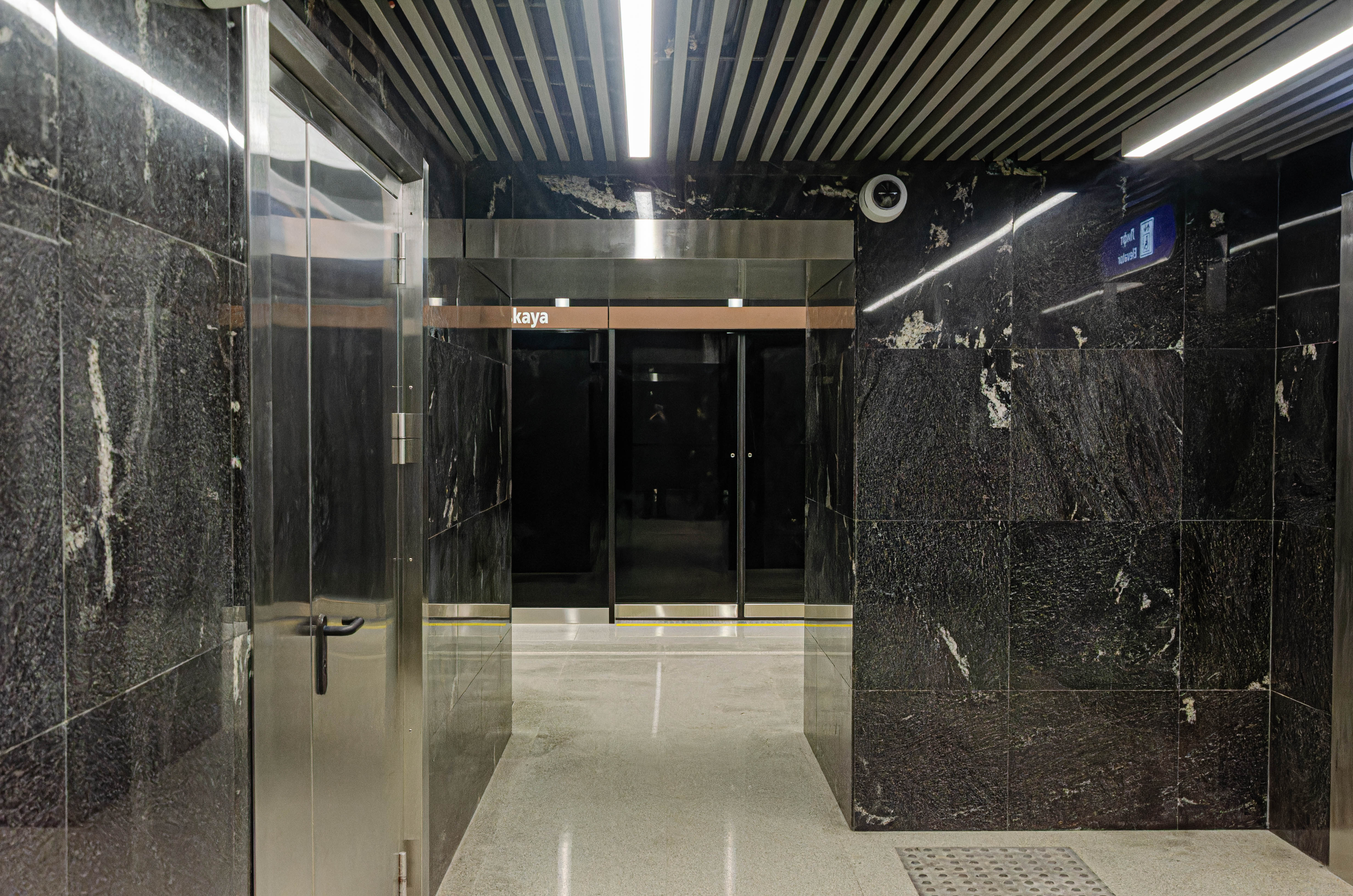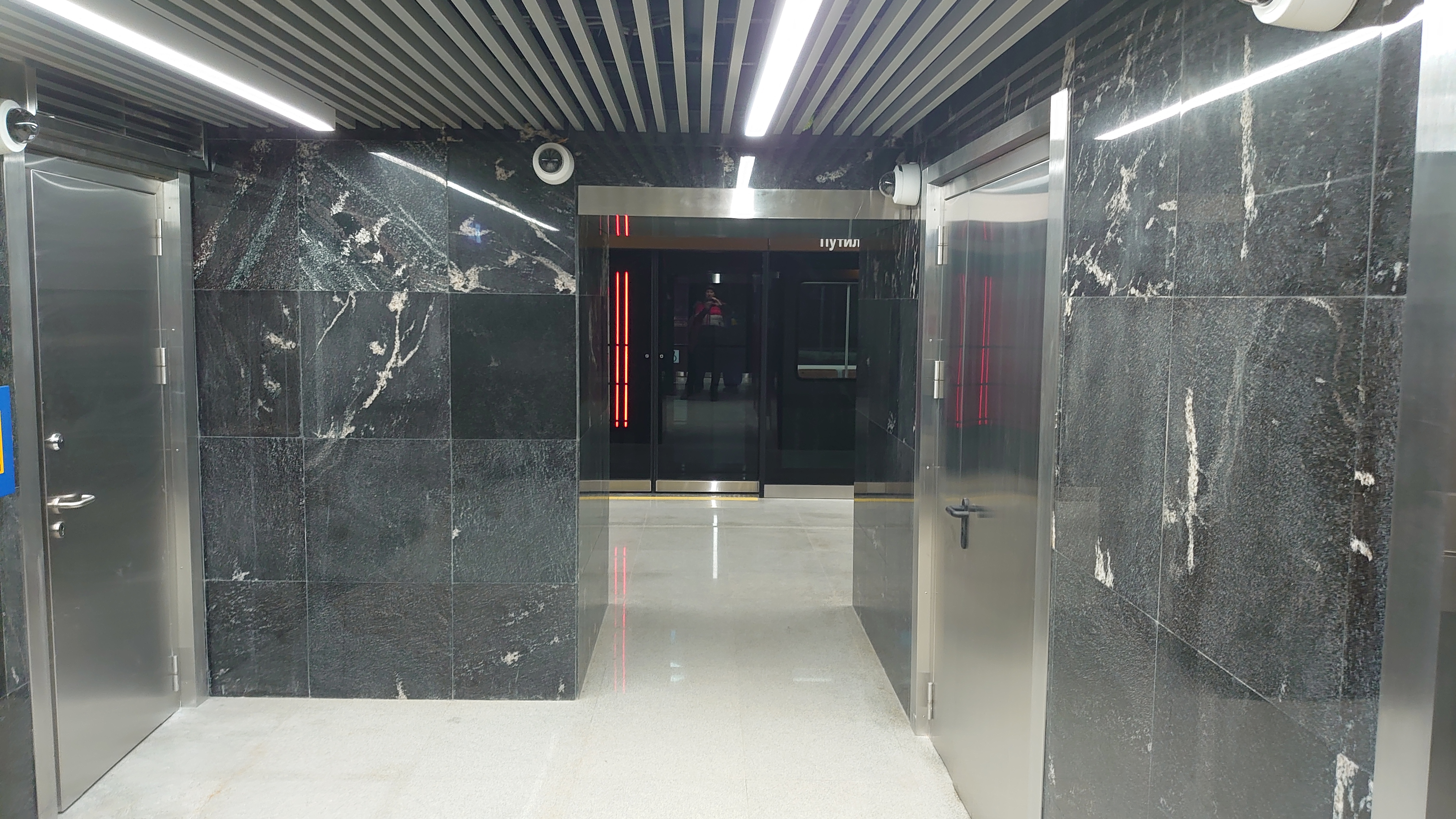 Тут в целом ничего необычного, этот лифт, ведущий со станции на пересадочный узел. В торце станции есть оба входа в этакое помещение, в котором находится дверь уже в другое помещение, в котором находится непосредственно сам лифт.
