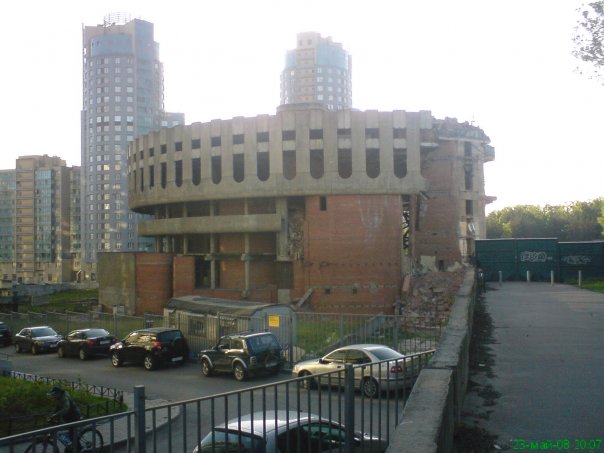 До того, как построили многоэтажные дома вокруг - это здание еще смотрелось (с поправкой на недострой), потом же превратилось в "какую-то странную постройку во дворе", не более того. Так что не удивительно что его снесли. Хотя лично я бы снес те дома вокруг.