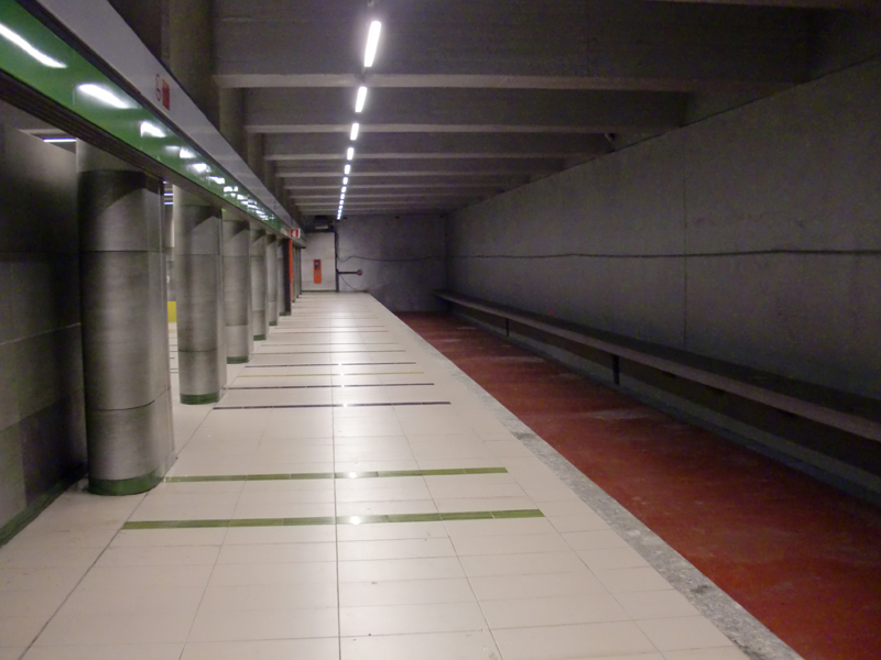 Кстати, при более детальном рассмотрении последнего снимка, возник вопрос: если станция будет кросс-платформенной, то почему со стороны перспективного пути наклеена зелёная полоса? Ведь там будет другая линия. Или планируется ответвление от основной линии?