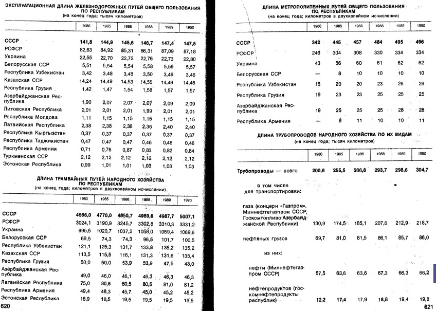 Таблицы из книги Народное хозяйство СССР в 1990г. Статистический ежегодник.