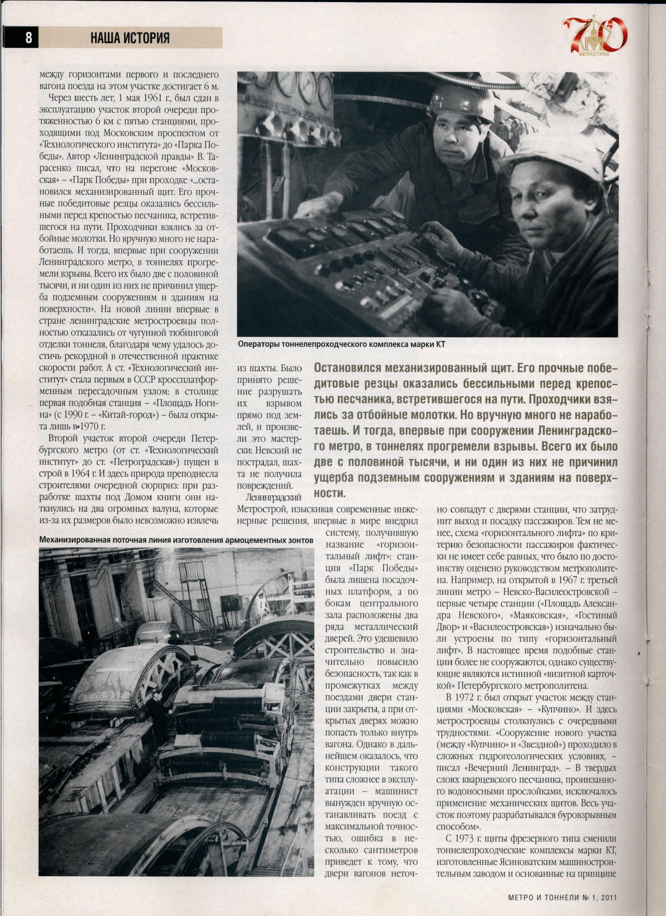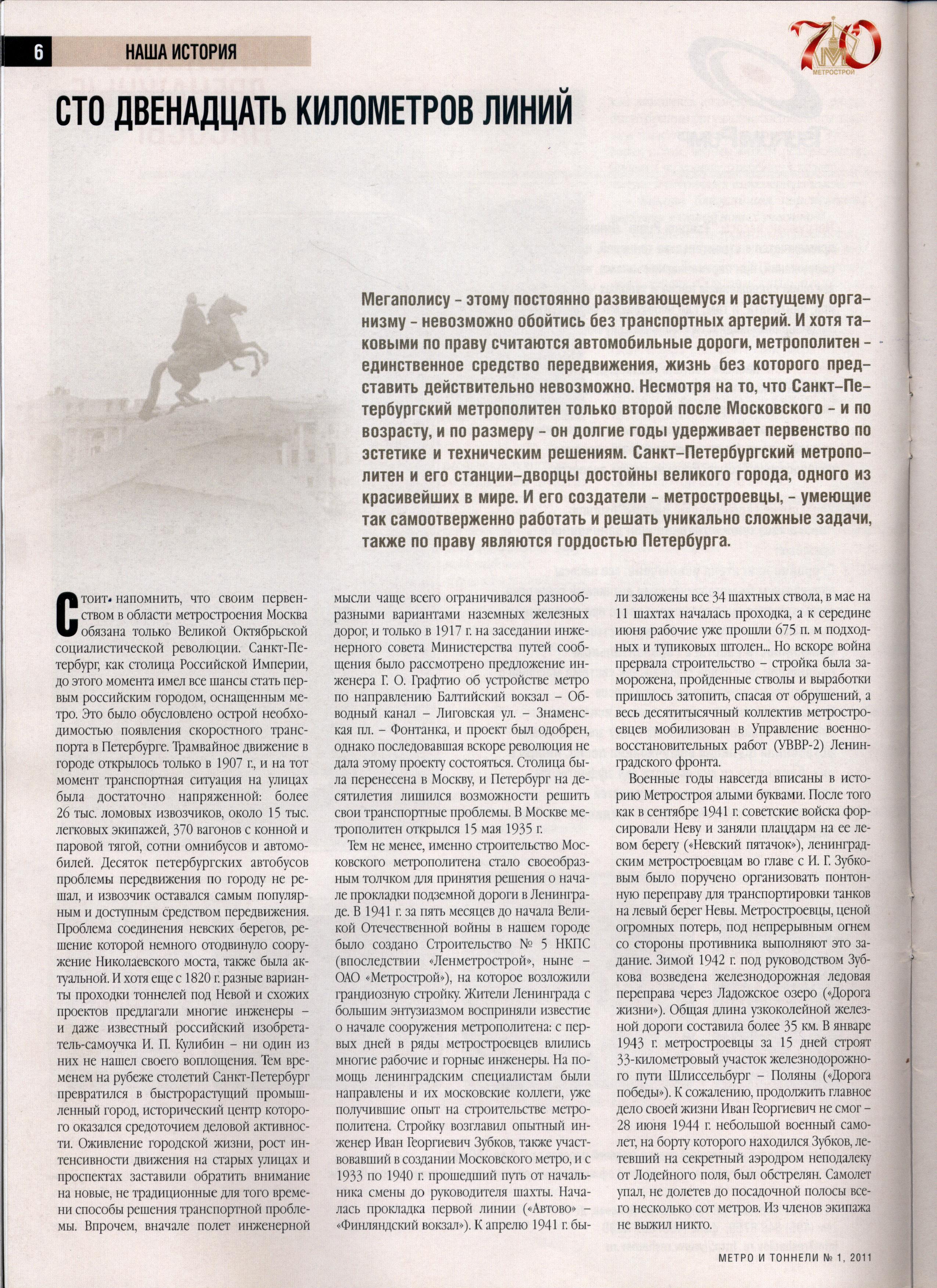 выложу в PDF Метро и Тоннели 4- 2020 года. В свободном доступе нет. Про юбилей 65 лет Петербургского метро
