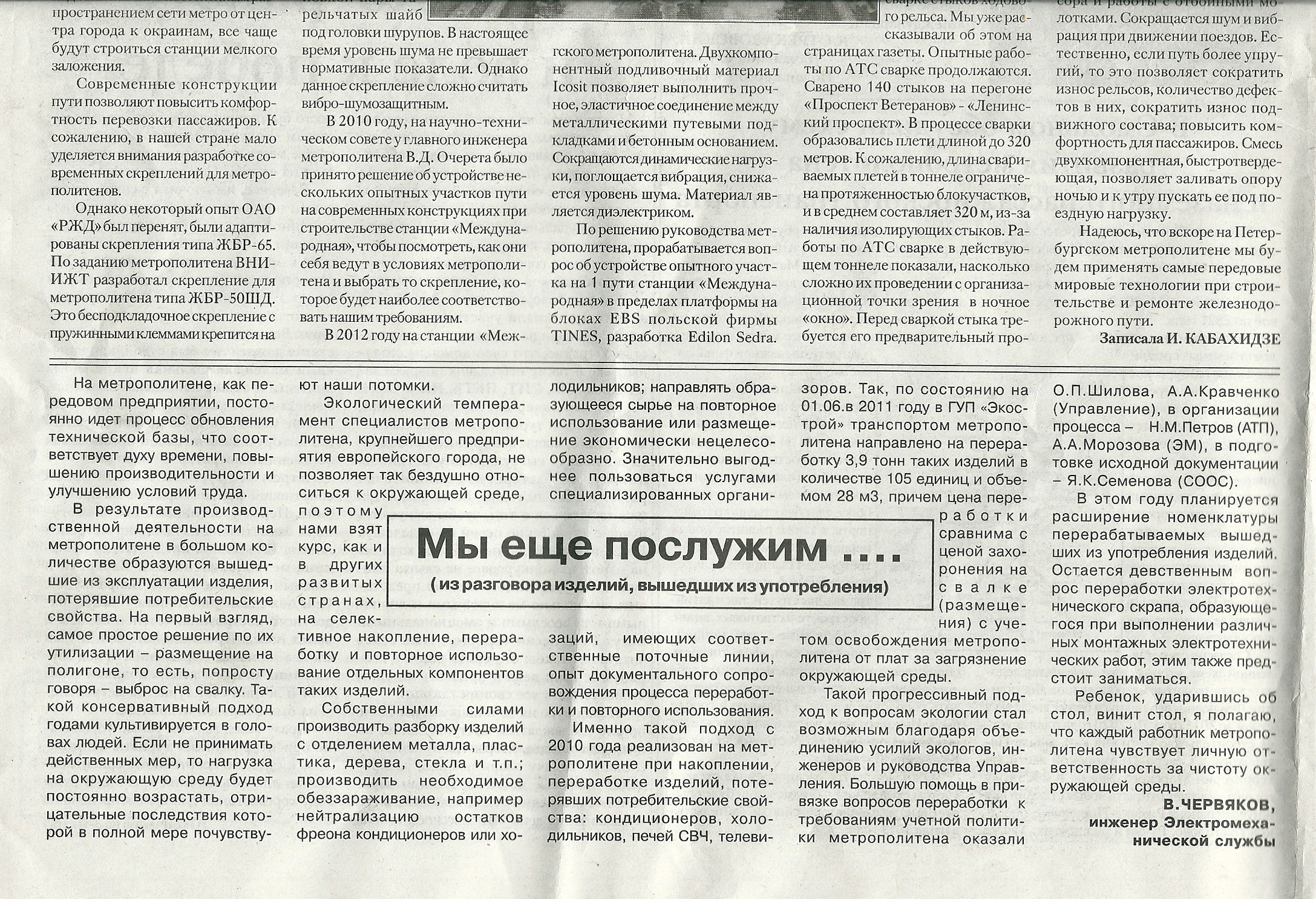 В статье В.В. Червякова (бывшего начальника Электромеханической службы) последний абзац я так и не смог расшифровать. Никак. Вообще не понял, о чём фраза и как привязана к остальному тексту.