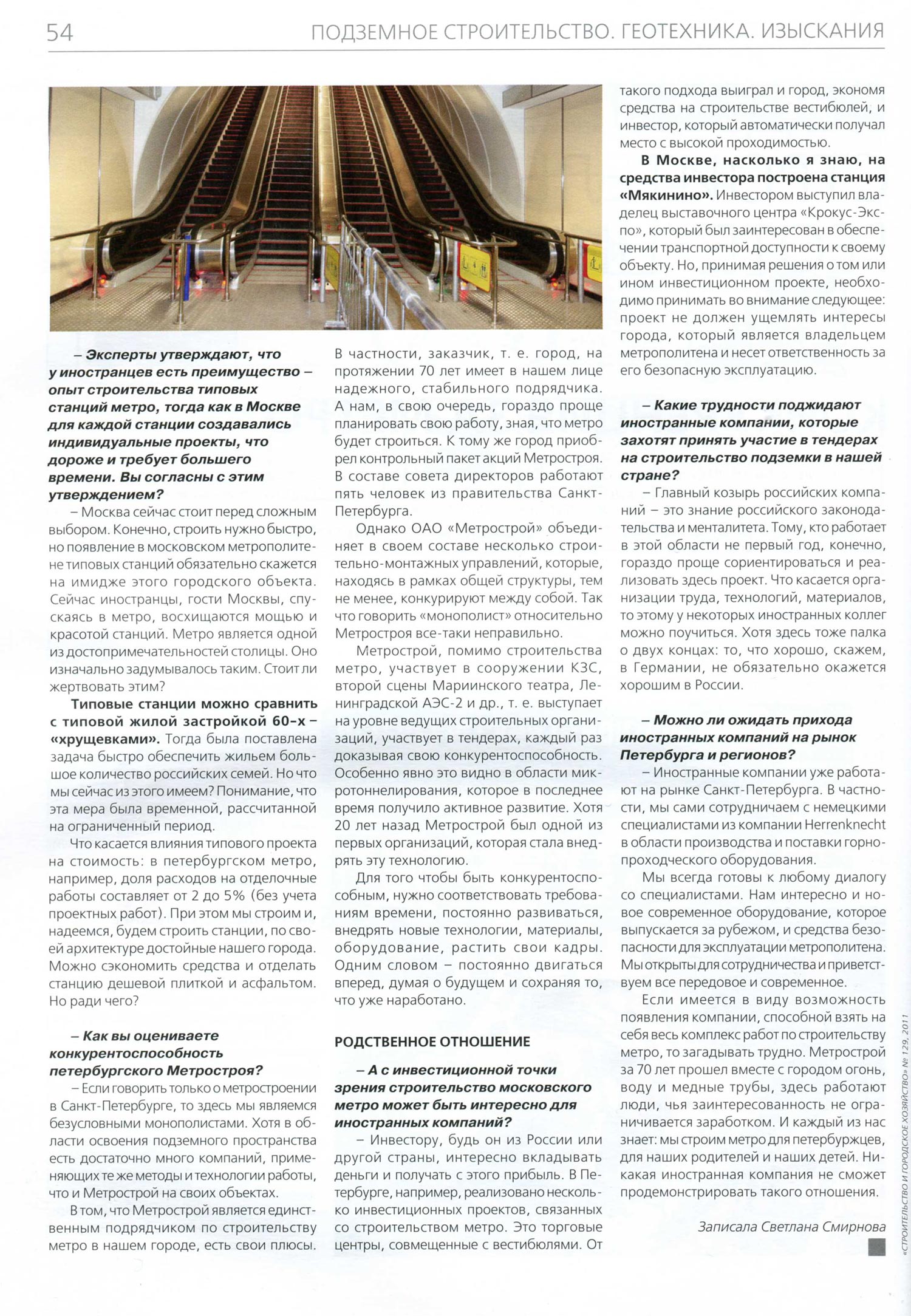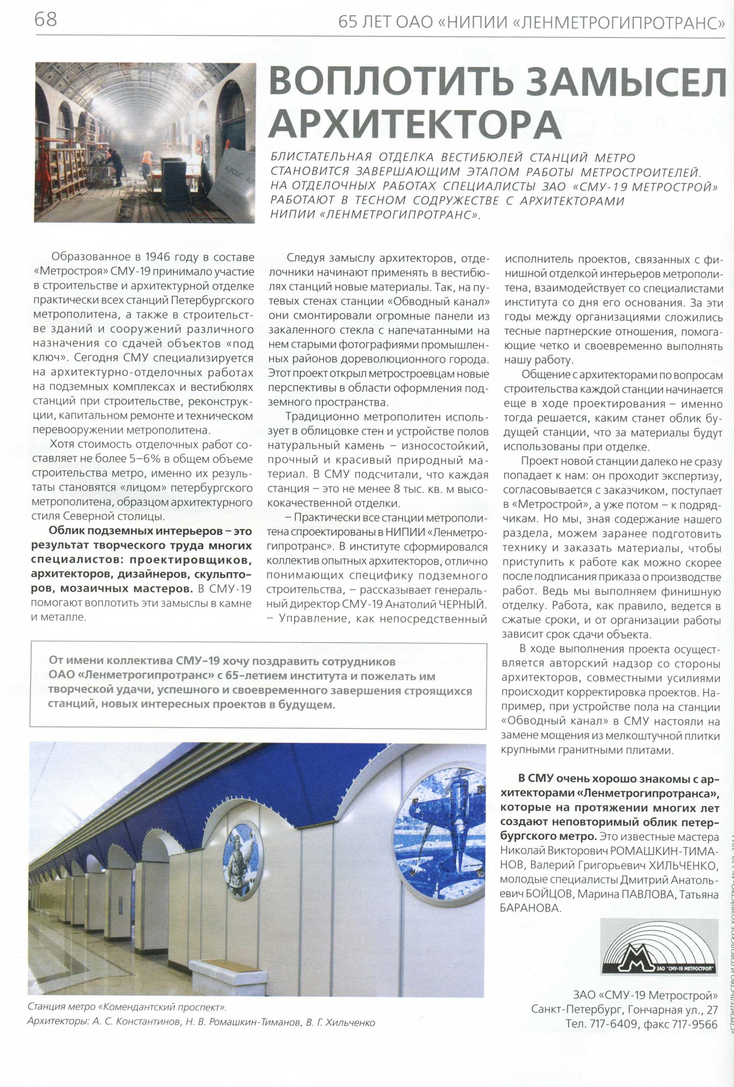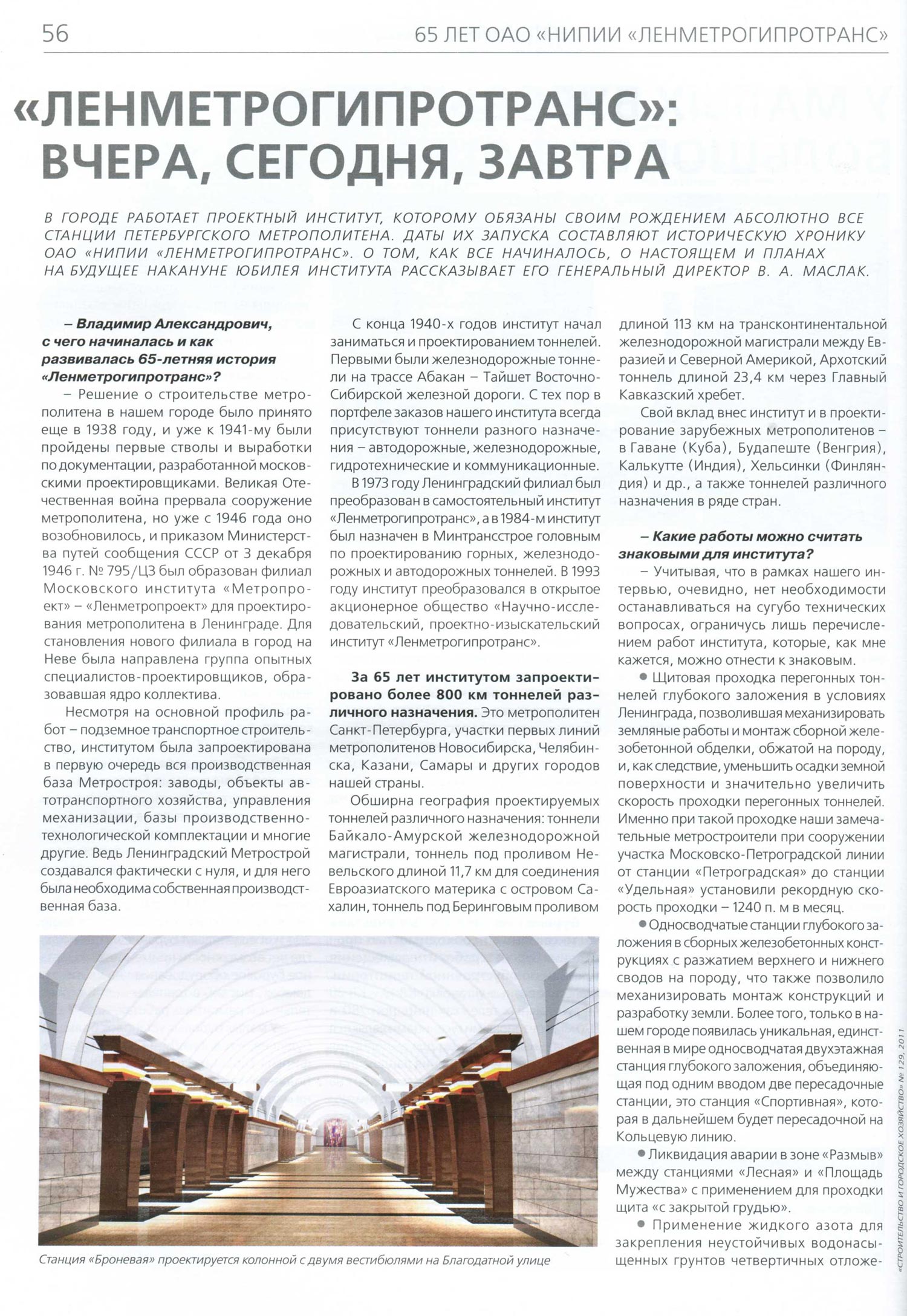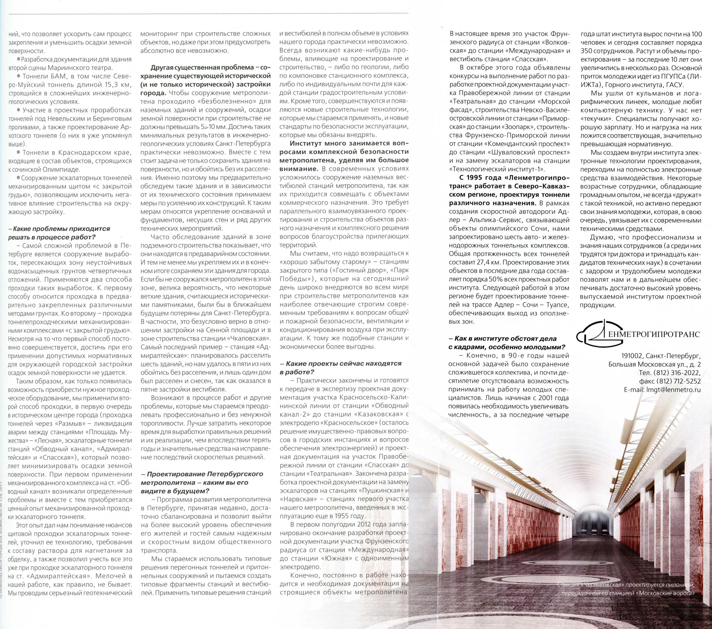Темы номера - конкурсы на строительство метро и 65-летие НИПИИ "Ленметрогипротранс"