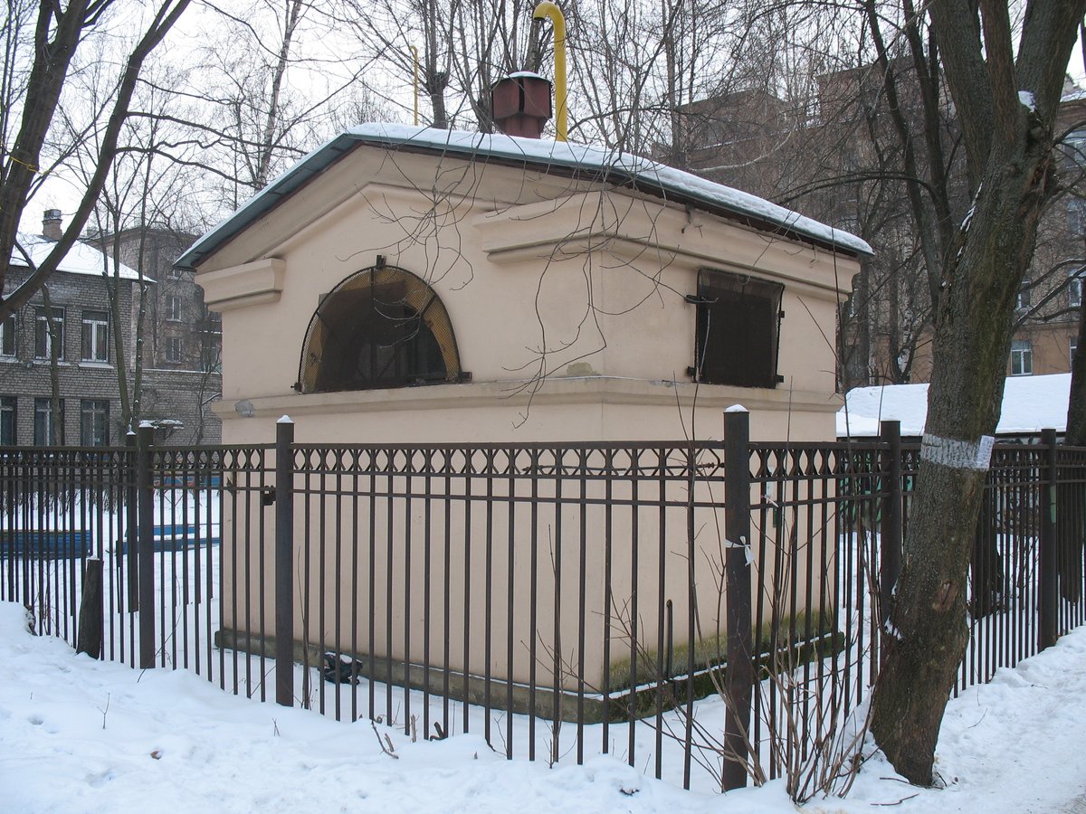 Поиск оптимальной конструкции длился некоторое время. Поэтому в жилых кварталах 1950-х годов постройки встречались и переходные варианты будок. Например, вот такая несерийная, оштукатуренная будка большого размера стоит в окрестностях Республиканской улицы, на Малой Охте: