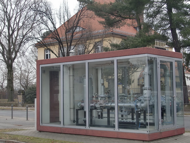 В этих будках расположен комплекс устройств, который понижает давление газа, подходящего из магистрального газопровода, до нужных параметров. И оттуда газ необходимого давления, по трубам поступает в кухни жилых домов, оснащенных газовыми плитами.
