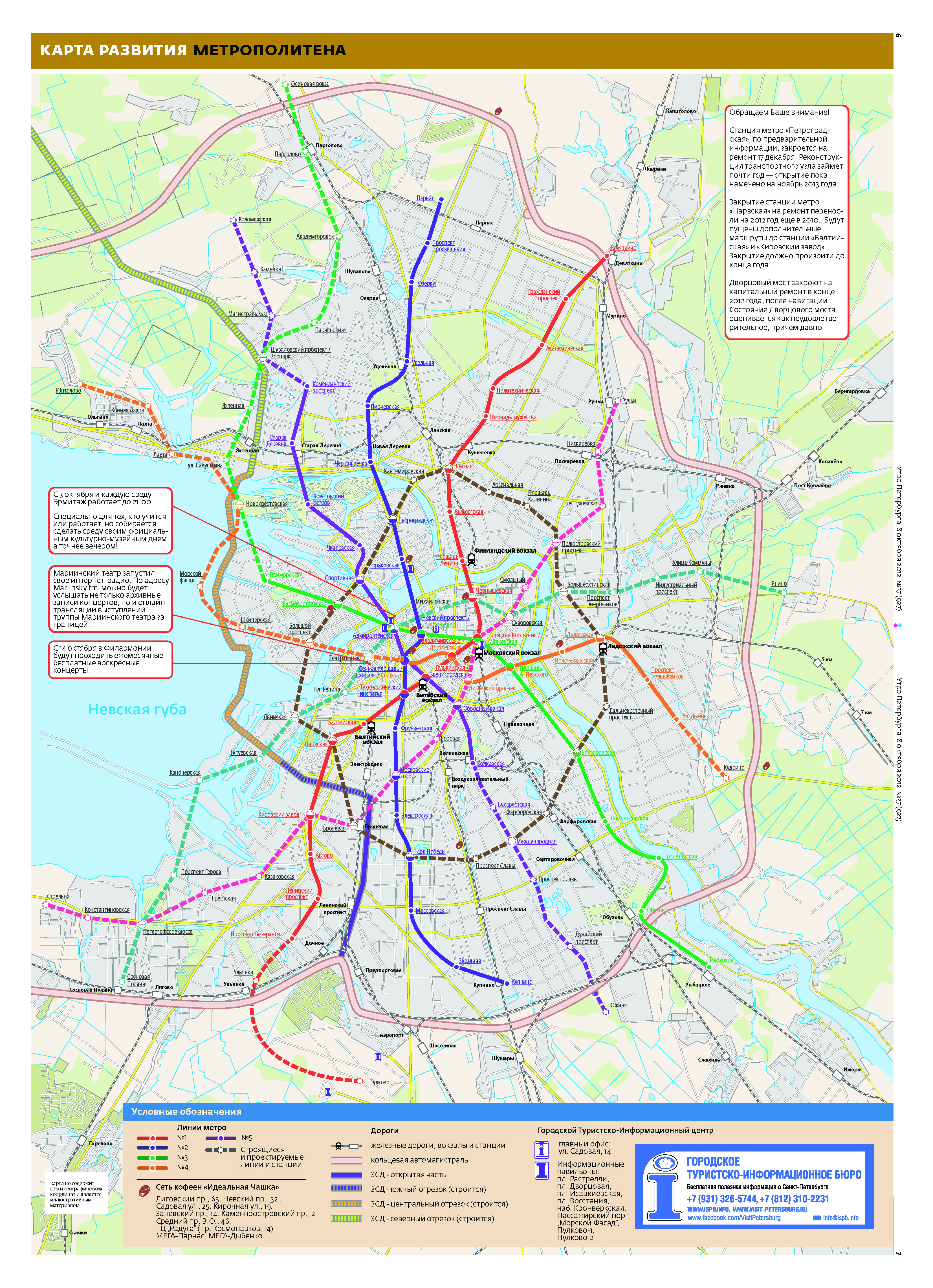 Карта развития метрополитена - газета Утро Петербурга от 8.10.2012.