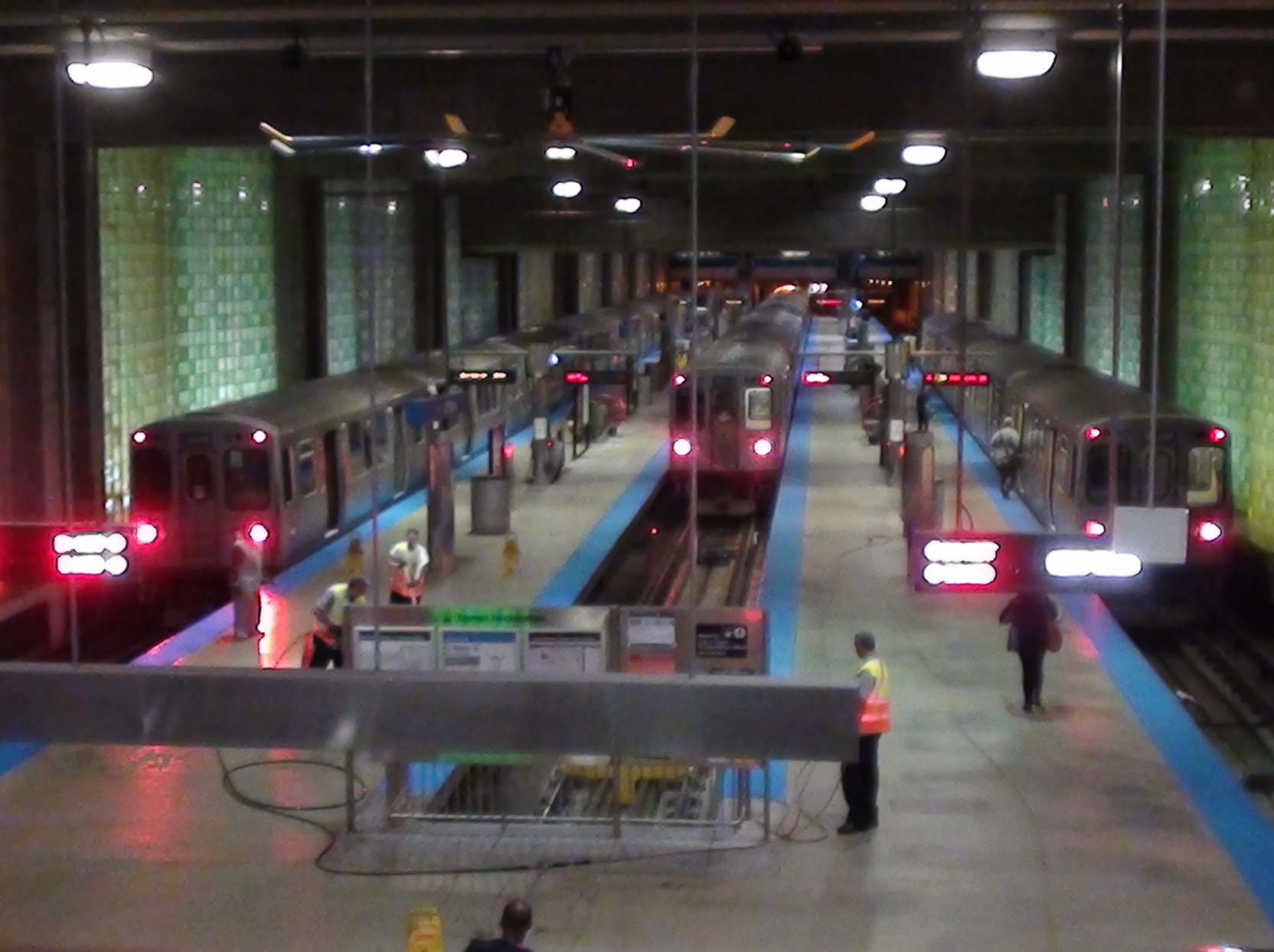 Вообще, Чикагский метрополитен сильно похож на Нью-Йоркский, точнее наоборот, в силу того, что Чикаго старше НЙ. Как по духу, так и по всему остальному. Вагоны менее удобные, чем в НЙ. Из-за планировки и из-за опять же, маленьких колёс. В кривых сильнее шатает. В НЙ на похожих по "кривизне" местах, просто чуть толкает. Тут полноценно уносит. Колея тут напомню, стандарт. В СФ не уносит из-за ширины колеи. Иначе при максималке в СФ на 120 км/ч часть людей просто бы упала. Есть пару мест в СФ где в кривых не сбрасывается скорость.