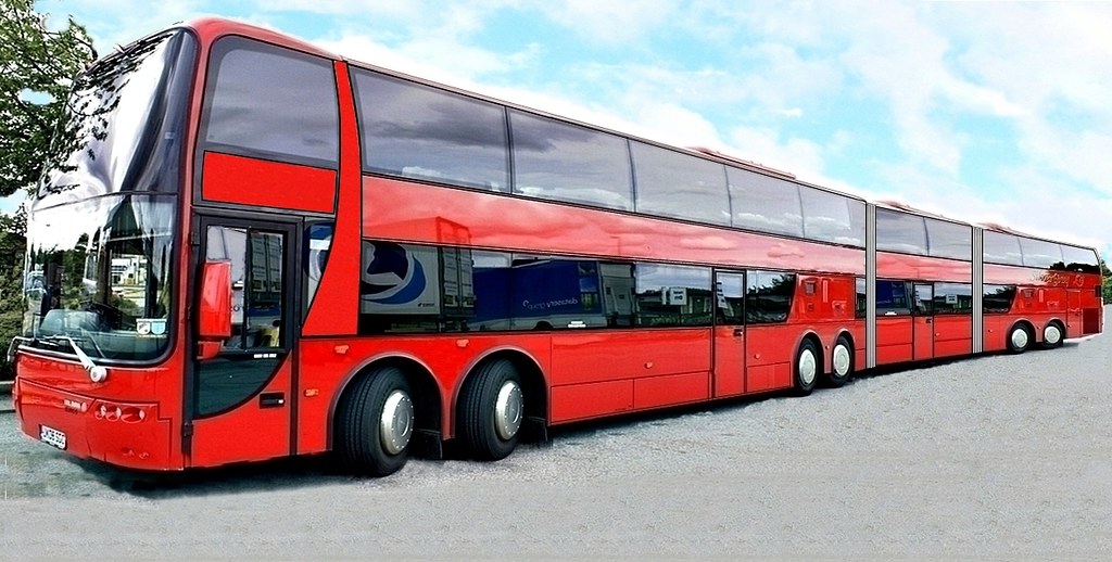 двухэтажные автобусы на электрической тяге, но увы, двигатели внутреннего сгорания получили большее распространение (приготовив потомкам