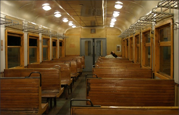 "Деревянный" салон, как на первой фотке, сейчас уже история. Последний раз я на такой ехал году в 2006-м. Насколько я понял, оставшиеся в живых "деревянные" не так давно (в 2010 последний вагон прошёл модернизацию) массово переделывали во что-то более современное (по крайней мере, деревянных оконных рам уже нет на линии - не знаю, как насчёт скамеек). Мне они запомнились исключительной уютностью (деревянный салон с освещением лампами накаливания) и вообще, был в них какой-то стиль 60-х годов. Запомнилось, правда, и то, что задница с этих сидений всё время норовила соскользнуть :)