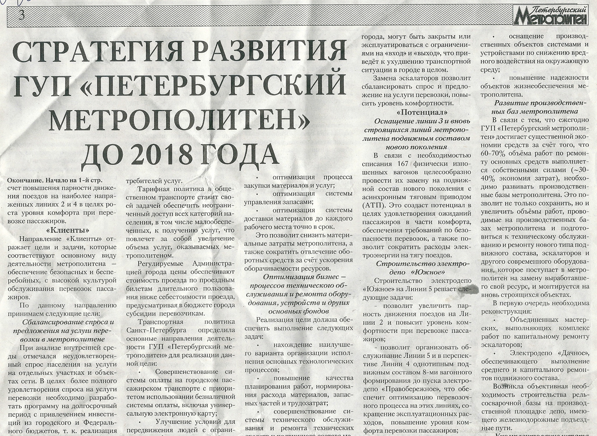 Большая статья о стратегии развития Петербургского метрополитена до 2018 года.