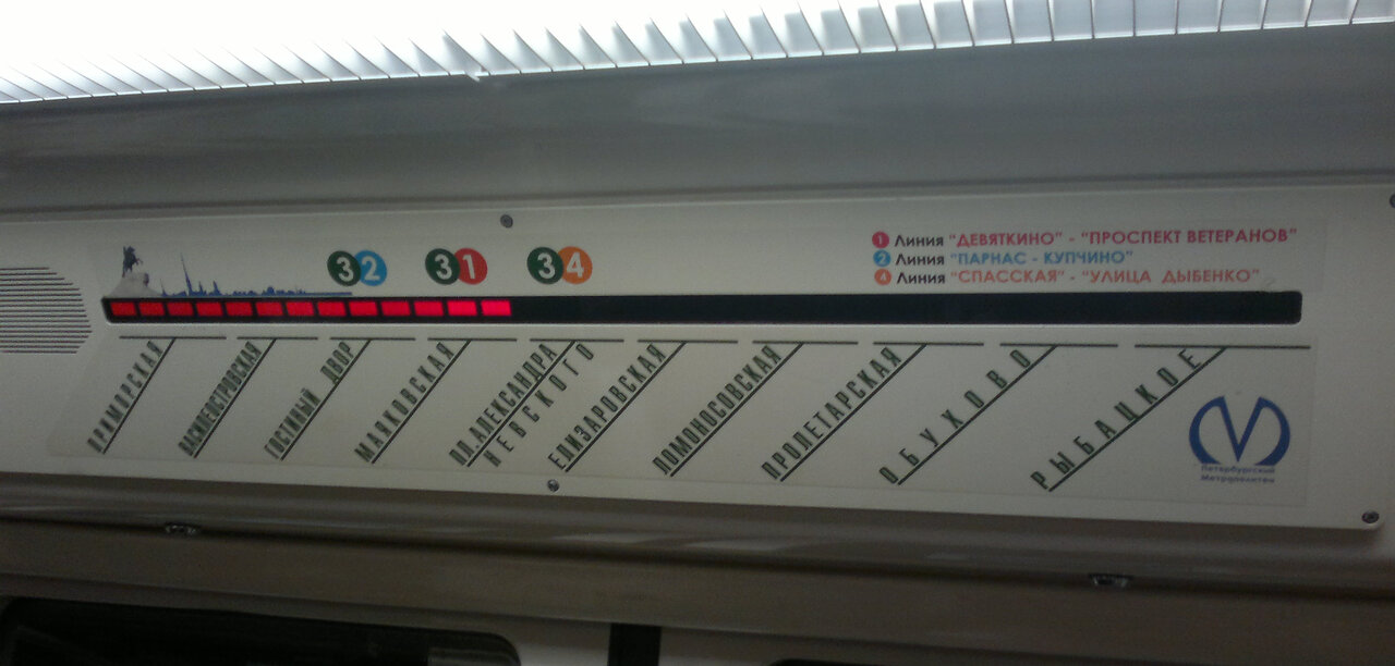 Хотел бы поделиться своими соображениями и наблюдениями по поводу наддверных табло. При их реализации, конечно, жутко нахалтурили. Видимо, потому что не думали совсем. Московский вариант даже обсуждать не буду - это просто жуть. Посмотрим на наш: