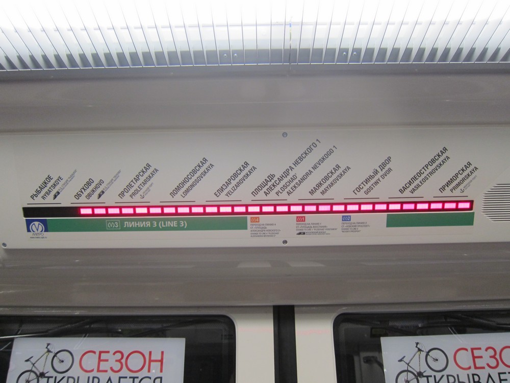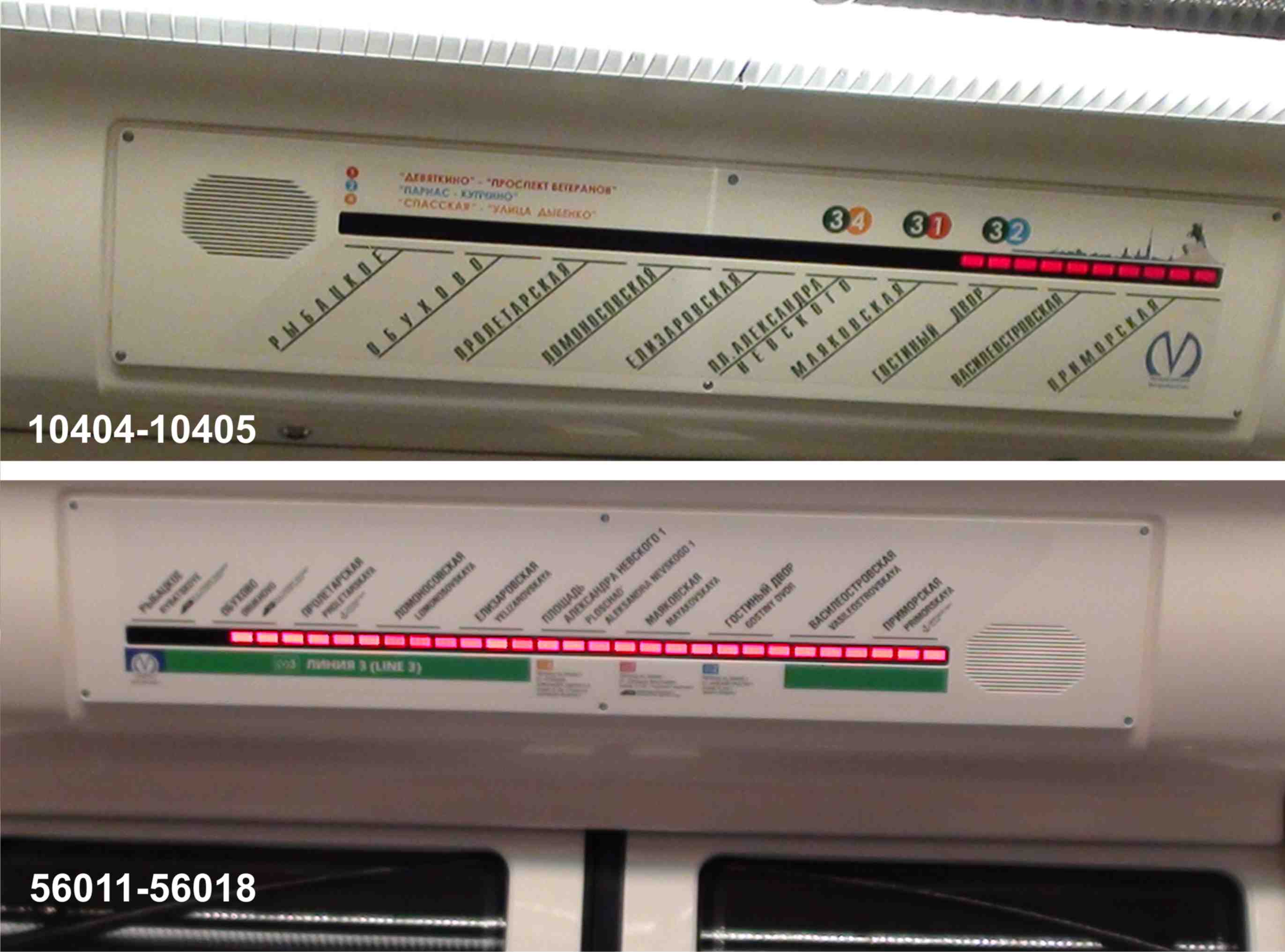 Это уже устаревший дизайн, слизанный с Москвы и имеющийся только на первом поезде "Нева". В новых Невушках такие же табло, но уже с совсем другим дизайном, который портит весь функционал, т.к. сделано коряво нашими НИПменами. Подробнее - смотрите тему о вагонах "НеВа".