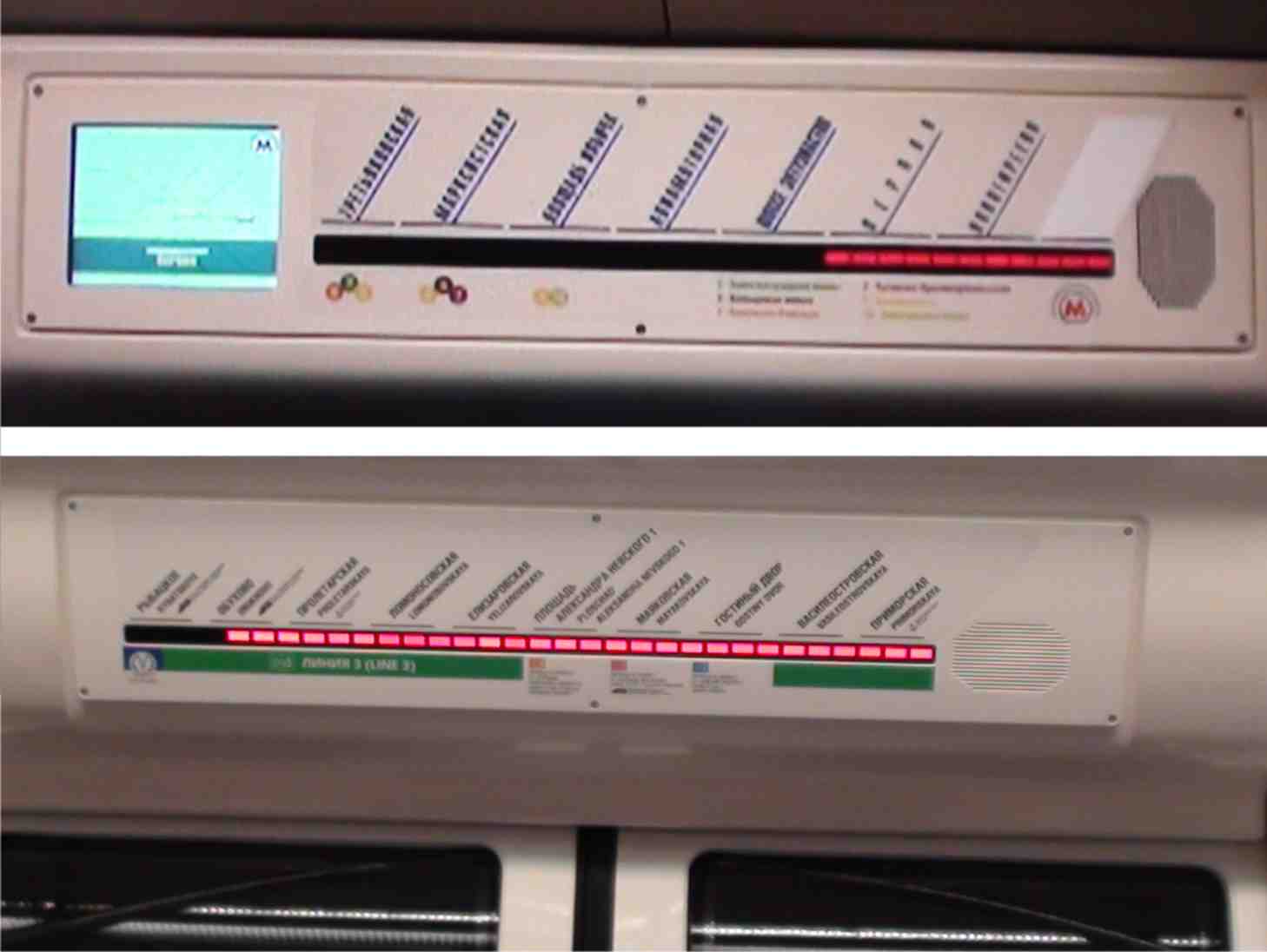Почему нельзя в каждом вагоне в торцах повесить по обычному монитору? Даже в автобусах (или троллейбусах) вешают. И выводить туда все что угодно в нормальном качестве без дурацких светодиодных индикаторов.