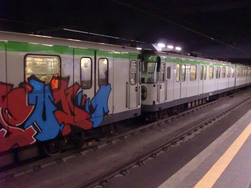 Поезда размалёваны графферами- впрочем, как и всё остальное в Милане- просто беспредел какой-то.