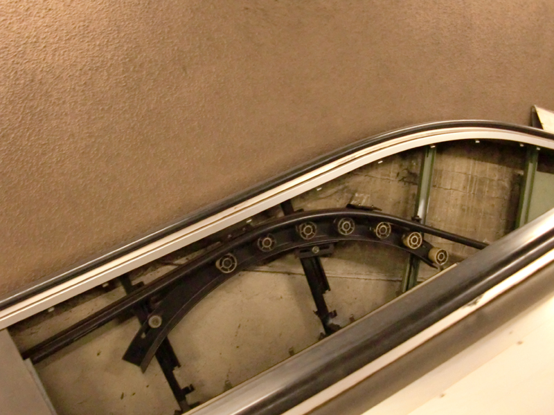 Это из-за малой длины эскалатора и у нас на пересадочных такая же конструкция?На наших больших НХ поручень после натяжного ролика внизу и наверху переворачивается на 90°, а потом при приближении к "хватательной" части доворачивается еще на 90°. В результате получается, что обратно поручень возвращается в том же положении, что и идет сверху.